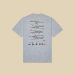 EXCLUSIVE AT LE ALFRÉ. Nothing says Winter like the Winter Olympics. This rare vintage graphic tee commemorates the Salt Lake City 2002 Winter Olympic Games with past locations around the world going back to the very first held in Chamonix, France (1924).