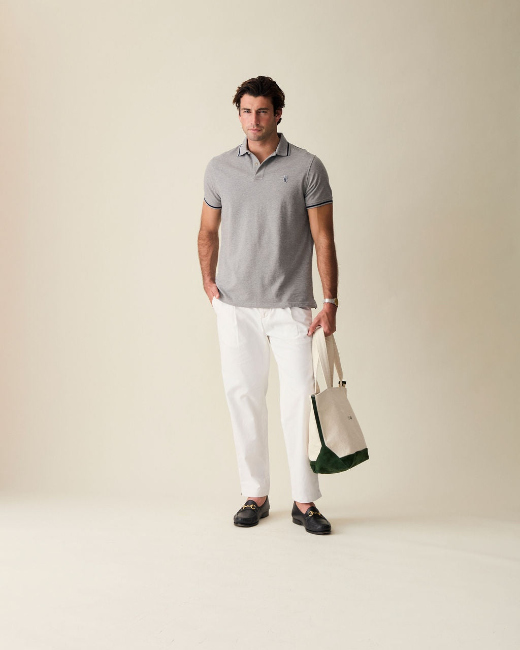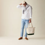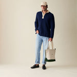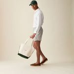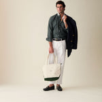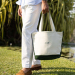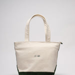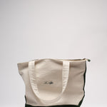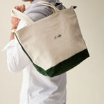 The official Le Alfré Tote Bag. Durable heavyweight canvas with YKK antique gold hardware, inner lining, suede pocket & signature hunter green suede details. Made in Portugal.