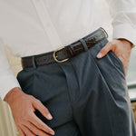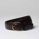 Dark Brown Crocodile Embossed Leather Belt