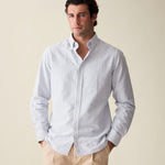 Our classic Oxford Shirt with wide navy stripes. A beautifully designed shirt that will get you feeling stylish for Spring. Handcrafted with beautiful Portuguese fabric.