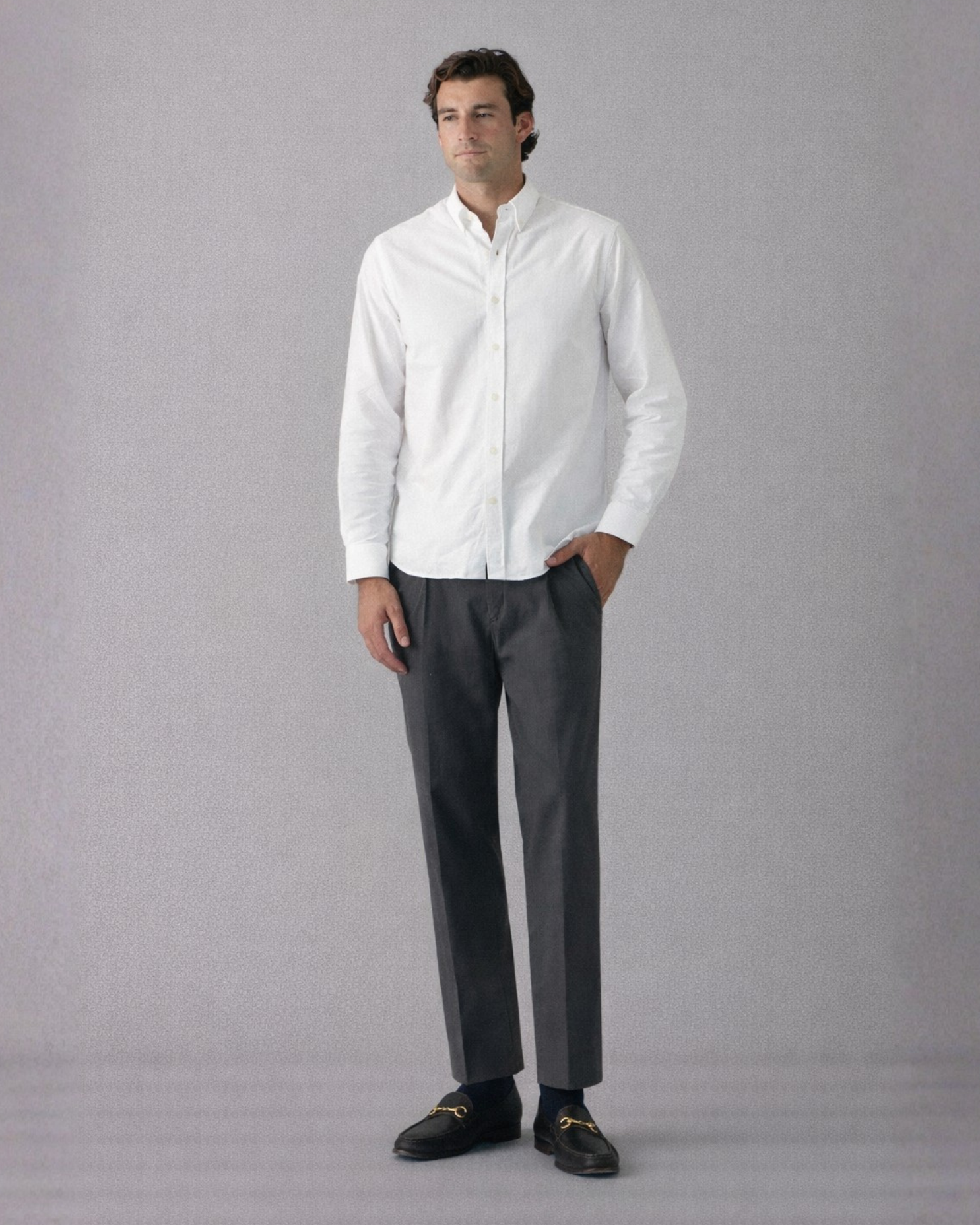 Every guy needs a crisp white shirt that lasts. Our classic Oxford Shirt in white is made for exactly that. An all-round great everyday white shirt. From the office to the bar. Handcrafted using the highest quality Oxford shirting fabric from the oldest fabric mill in Portugal.