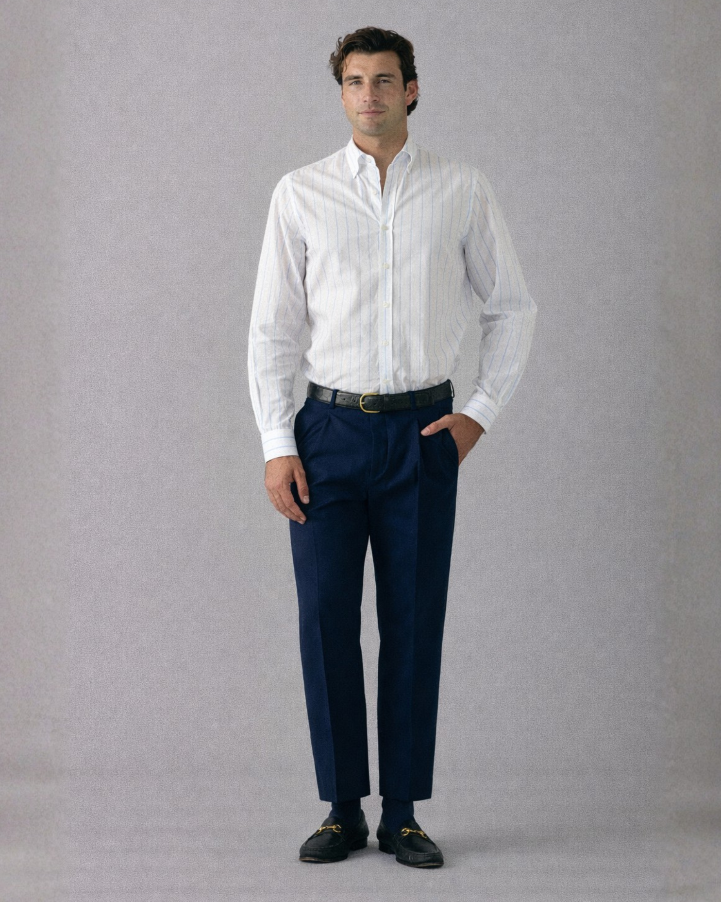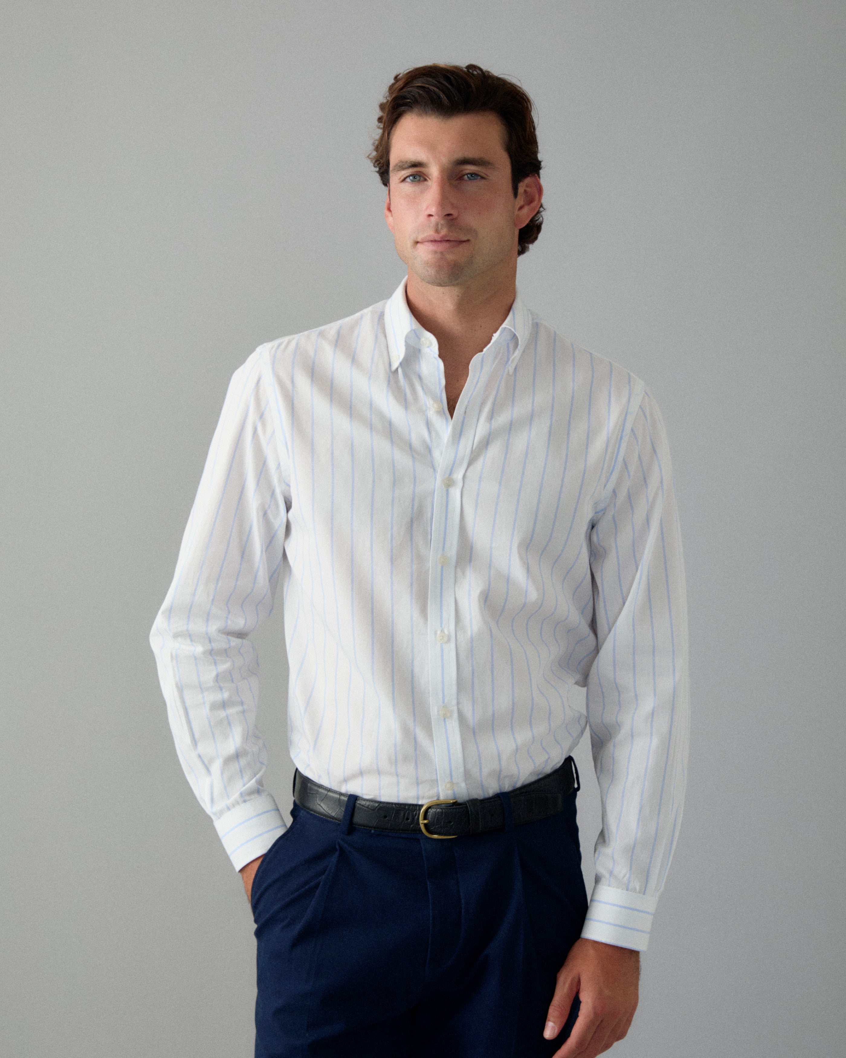 A cool and casual dress shirt for the office & handling your business after. Soft, durable & lightweight men's dress shirting fabric handcrafted from the oldest fabric mill in Portugal. A custom pattern designed in New York.