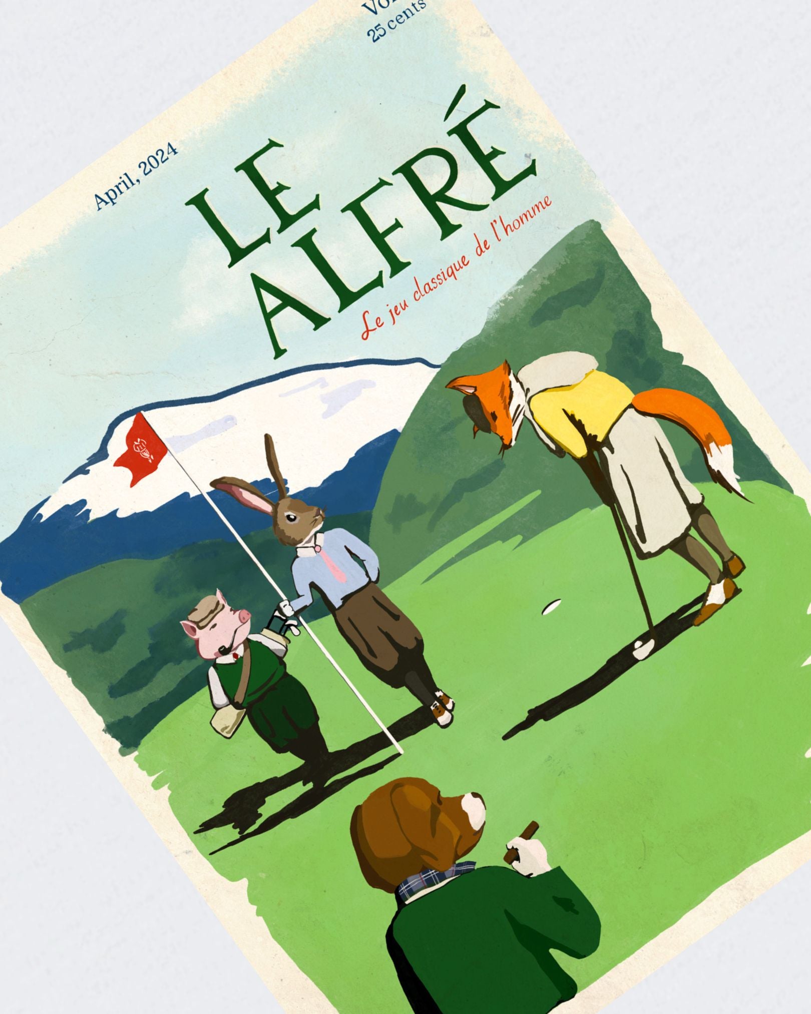 Inspired by the heritage of the classic gentleman's game, or in Alfré's words, "Le jeu classique de l'homme" this limited edition graphic tee depicts the timeless elegance and rich history of golf through the iconic vintage golf ads from the 1900s. A cool & playful design with intricate detailing of vintage golf clubs and attire, to the lush greens of the course and beautiful views. A timeless game and style of sportsmanship, etiquette, and integrity.