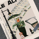 Inspired by Alfré's recent travels to England. This tee depicts the life of British aristocracy with a playful Art Deco inspired illustration of "A Royal Welcome". After a long day of work at the Canary Wharf office, Alfré is welcomed by his butler & English beagle at his modest Grosvenor Crescent mansion.