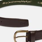 A classic & timeless brown leather belt. Made in Portugal from real, genuine Portuguese leather, "Le Belt" is versatile, elegant and comfortable. It's the perfect accessory for both formal and casual looks. Our no-filling, smooth pebble grain texture makes it extremely lightweight, and our old-gold brass buckle adds an old-world charm to any outfit. A necessary item for any man's wardrobe.