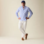 Marina Blue Wide Stripe Summer Chambray Shirt