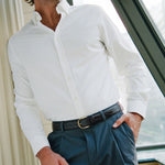 Every guy needs a crisp white shirt that lasts. Our classic Oxford Shirt in white is made for exactly that. An all-round great everyday white shirt. From the office to the bar. Handcrafted using the highest quality Oxford shirting fabric from the oldest fabric mill in Portugal.