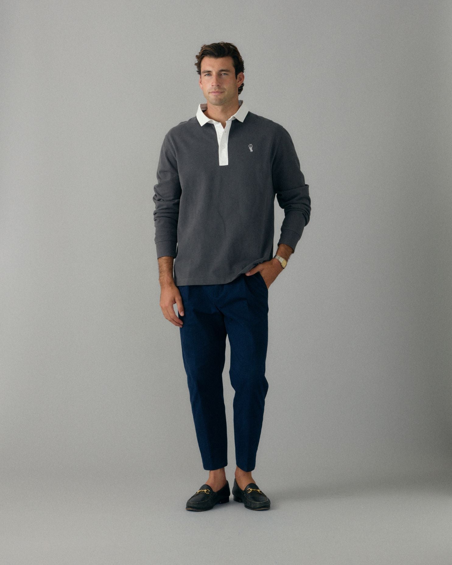 A classique rugby for a classique man. This rugby shirt is made with ultra-fine & ultra-soft Portuguese cotton 280gm for perfect all year round wear. Featuring a dark grey colorway, Le Rugby Classique is the perfect combo of elegance & sport.