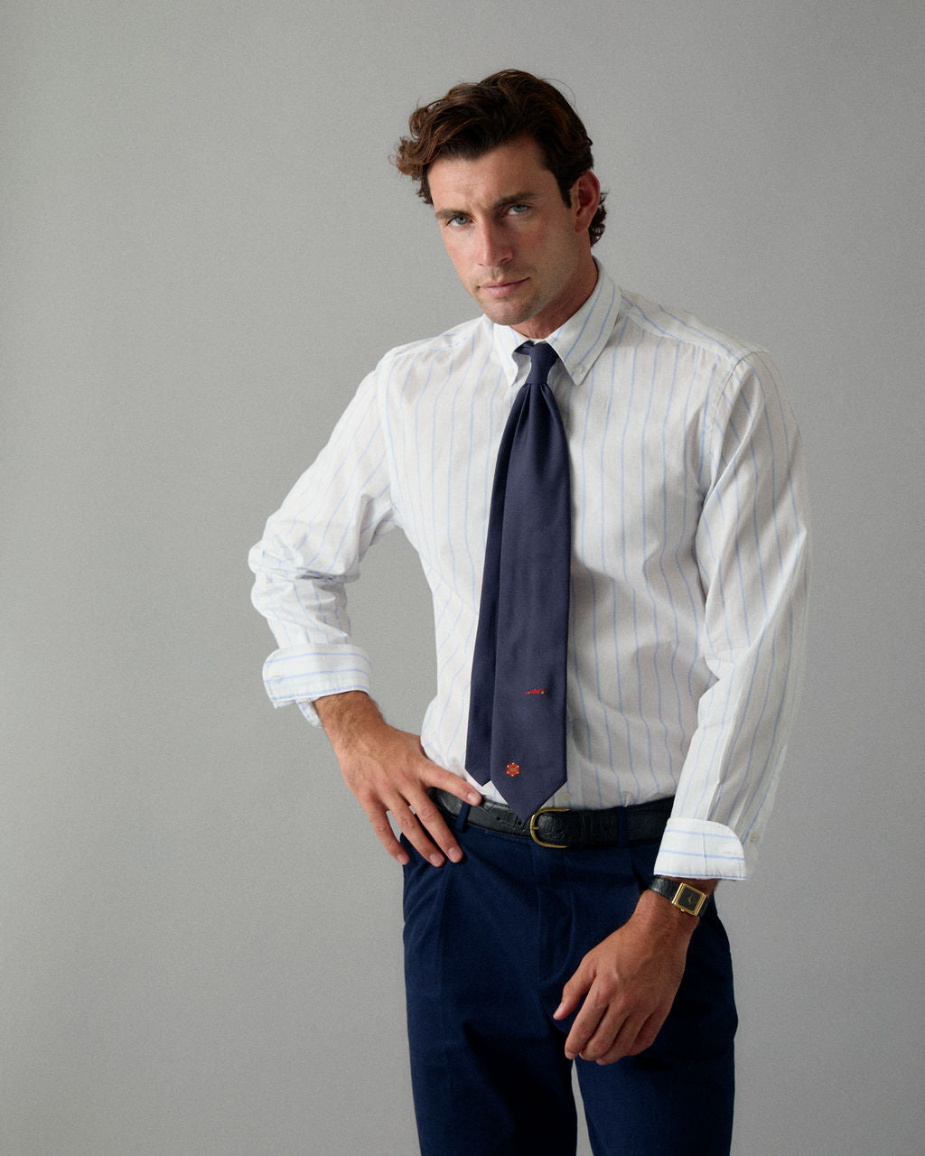 100% Shappe Silk Tie in classic navy. Handcrafted in Lake Como, Italy. Fast foreign cars & big bets. The only way to live in "Monaco".