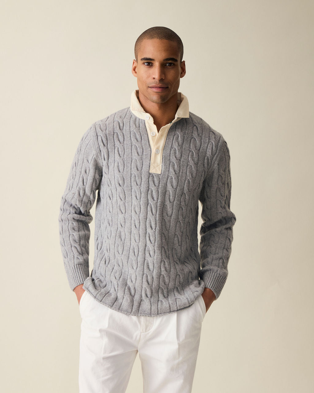 Combining our best-selling rugby shirt collar with a beautiful cable knit design, this item is the first ever of it's kind handcrafted in Turkey. Made with beautiful, soft & comfortable with extra-fine Turkish cotton. A style unique to a certain lifestyle of simplicity, elegance & luxury.