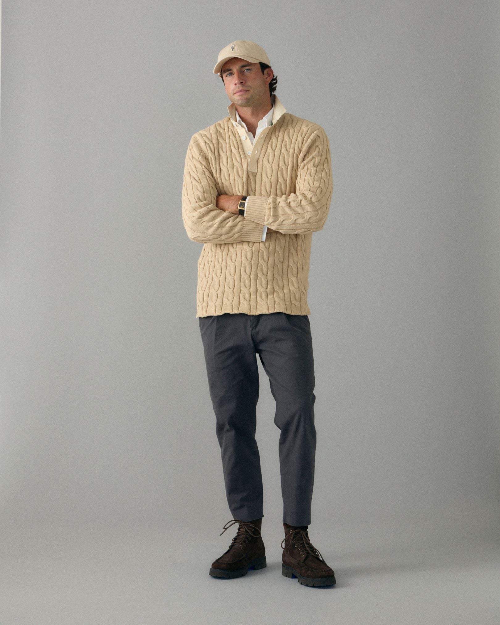 Combining our best-selling rugby shirt collar with a beautiful cable knit design, this item is the first ever of it's kind handcrafted in Turkey. Made with beautiful, soft & comfortable with extra-fine Turkish cotton. A style unique to a certain lifestyle of simplicity, elegance & luxury.