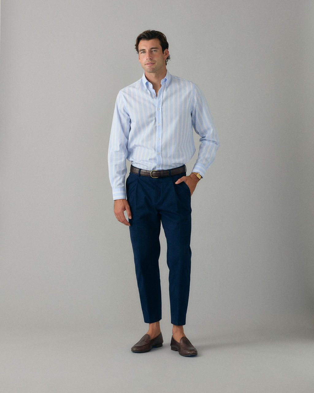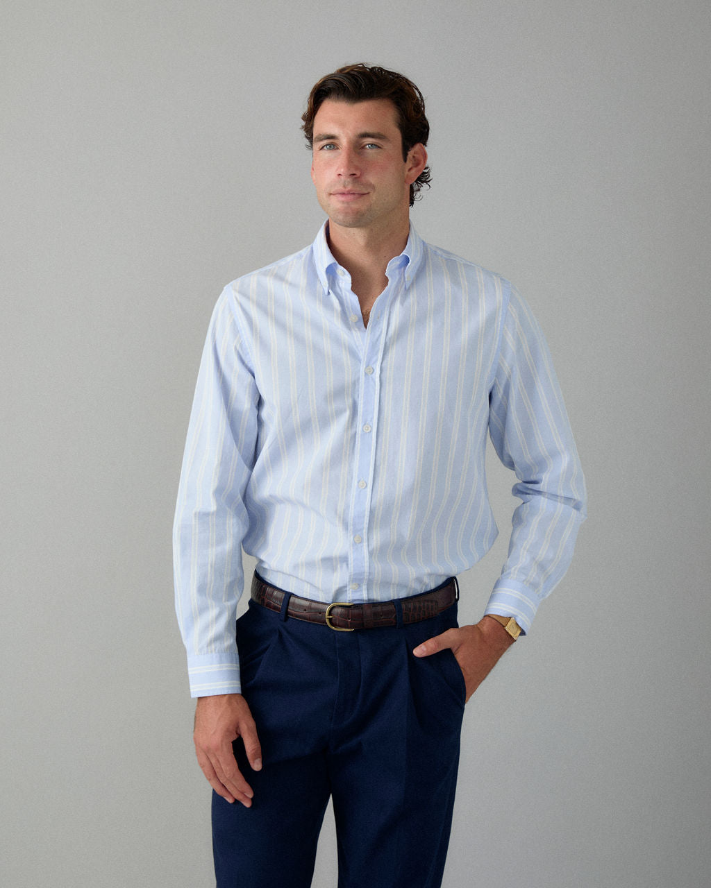 A cool and casual dress shirt for the office & handling your business after. Soft, durable & lightweight men's dress shirting fabric handcrafted from the oldest fabric mill in Portugal. A custom pattern designed in New York.