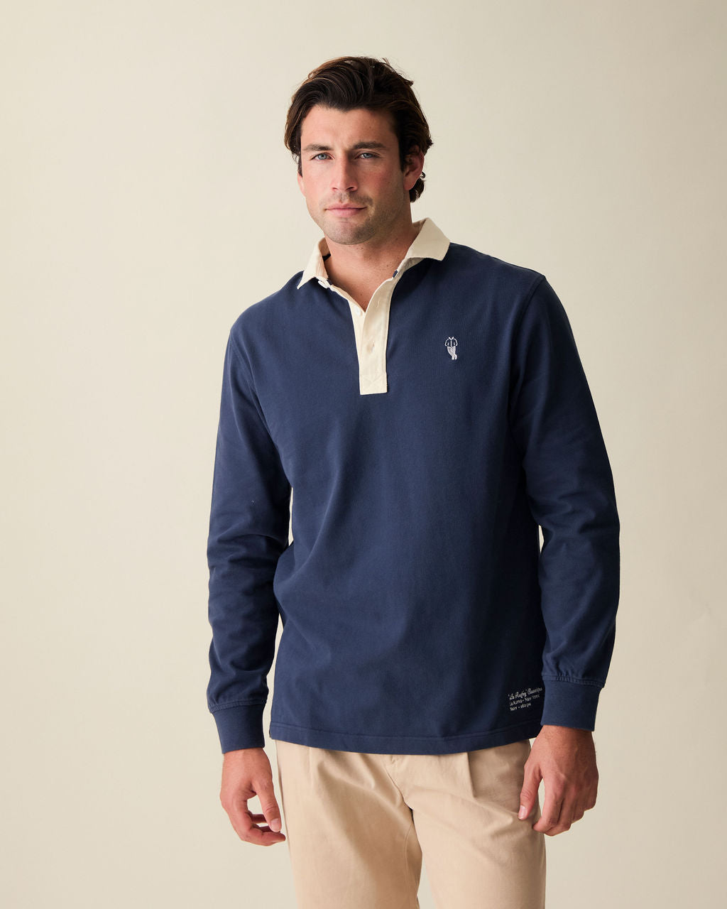 A classique rugby for a classique man. This rugby shirt is made with ultra-fine & ultra-soft Portuguese cotton 280gm for perfect all year round wear. Featuring a clean navy colorway, Le Rugby Classique is the perfect combo of elegance & sport. A piece most suitable for the esteemed members of a cool & classique lifestyle.