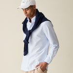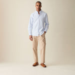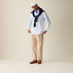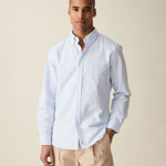 Our classic Oxford Shirt with wider white and light blue stripes. A sophisticated look with a gentle colorway perfect for Spring. Handcrafted with beautiful Portuguese fabric.