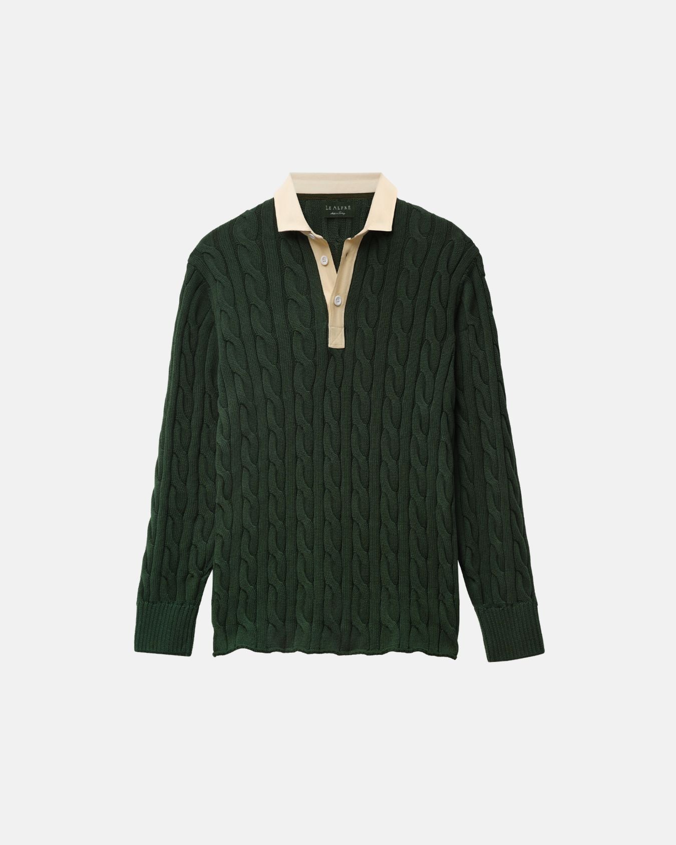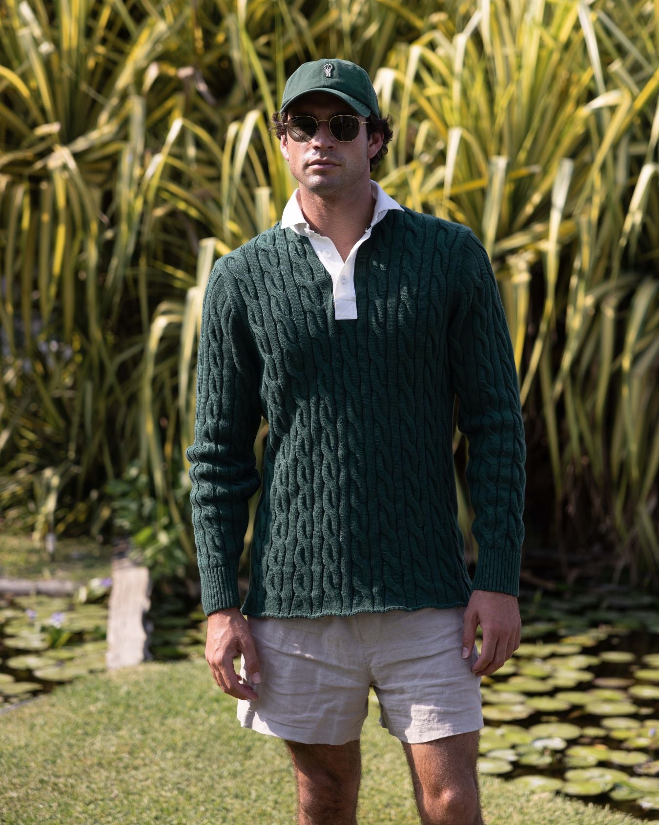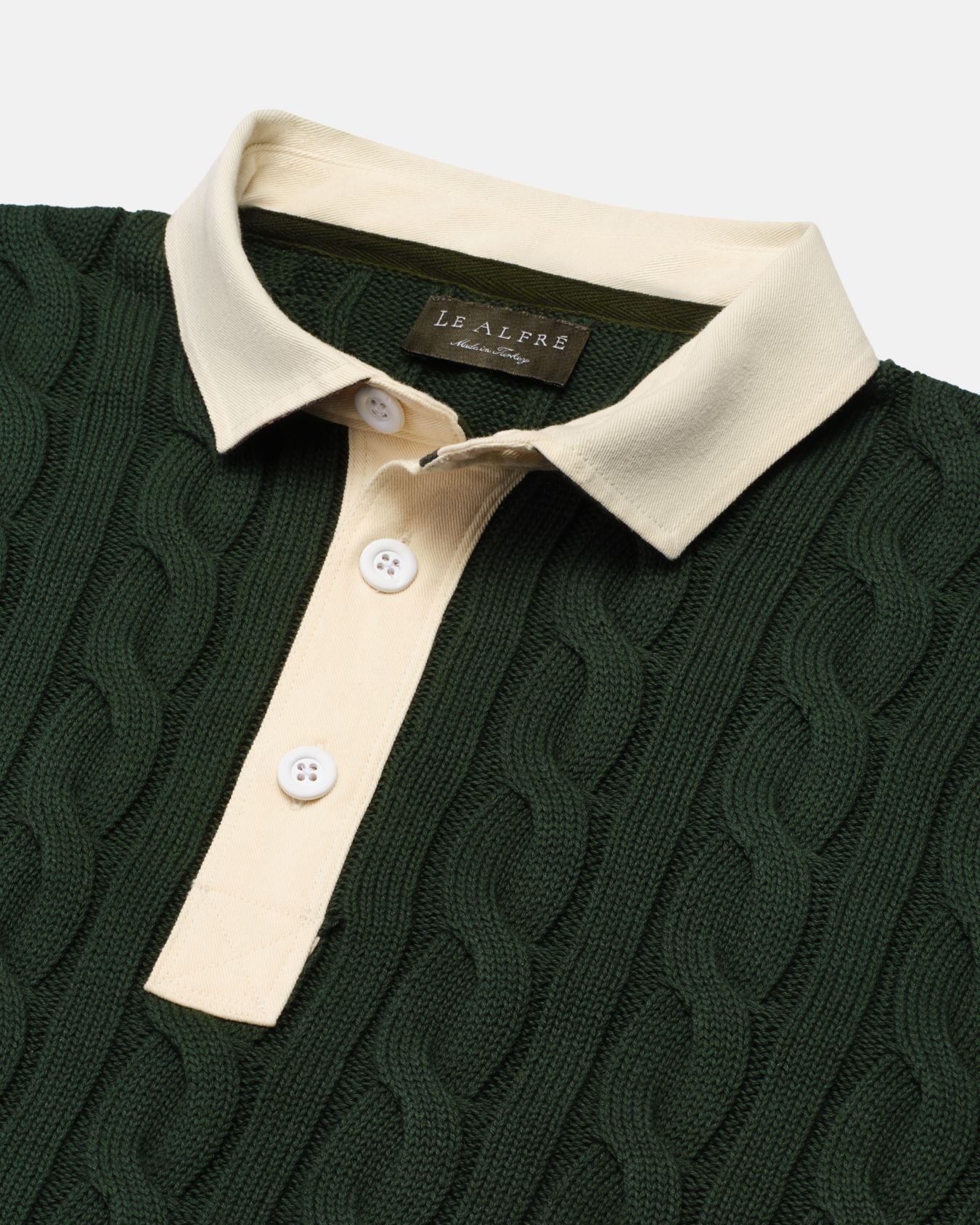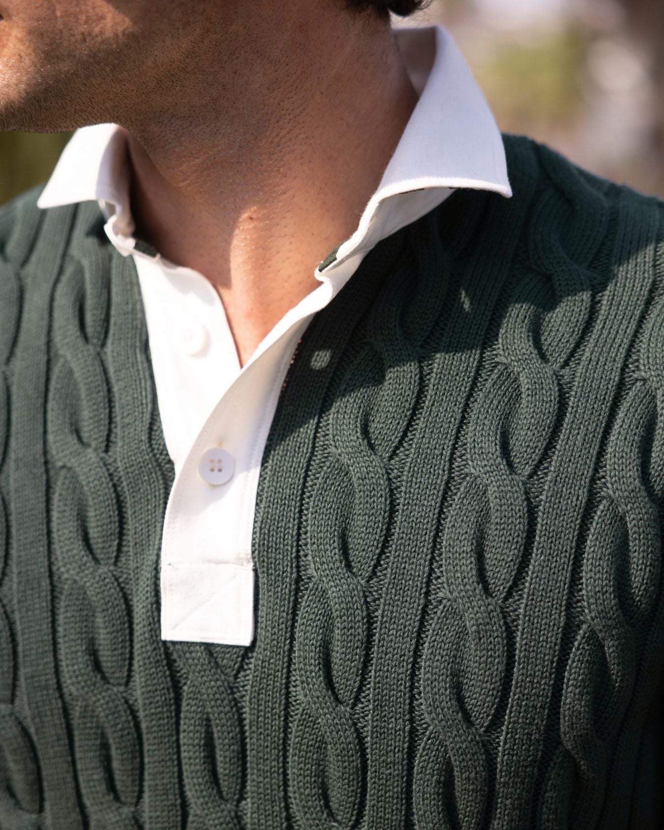 Combining our best-selling rugby shirt collar with a beautiful cable knit design, this item is the first ever of it's kind handcrafted in Turkey. Made with beautiful, soft & comfortable with extra-fine Turkish cotton. A style unique to a certain lifestyle of simplicity, elegance & luxury.