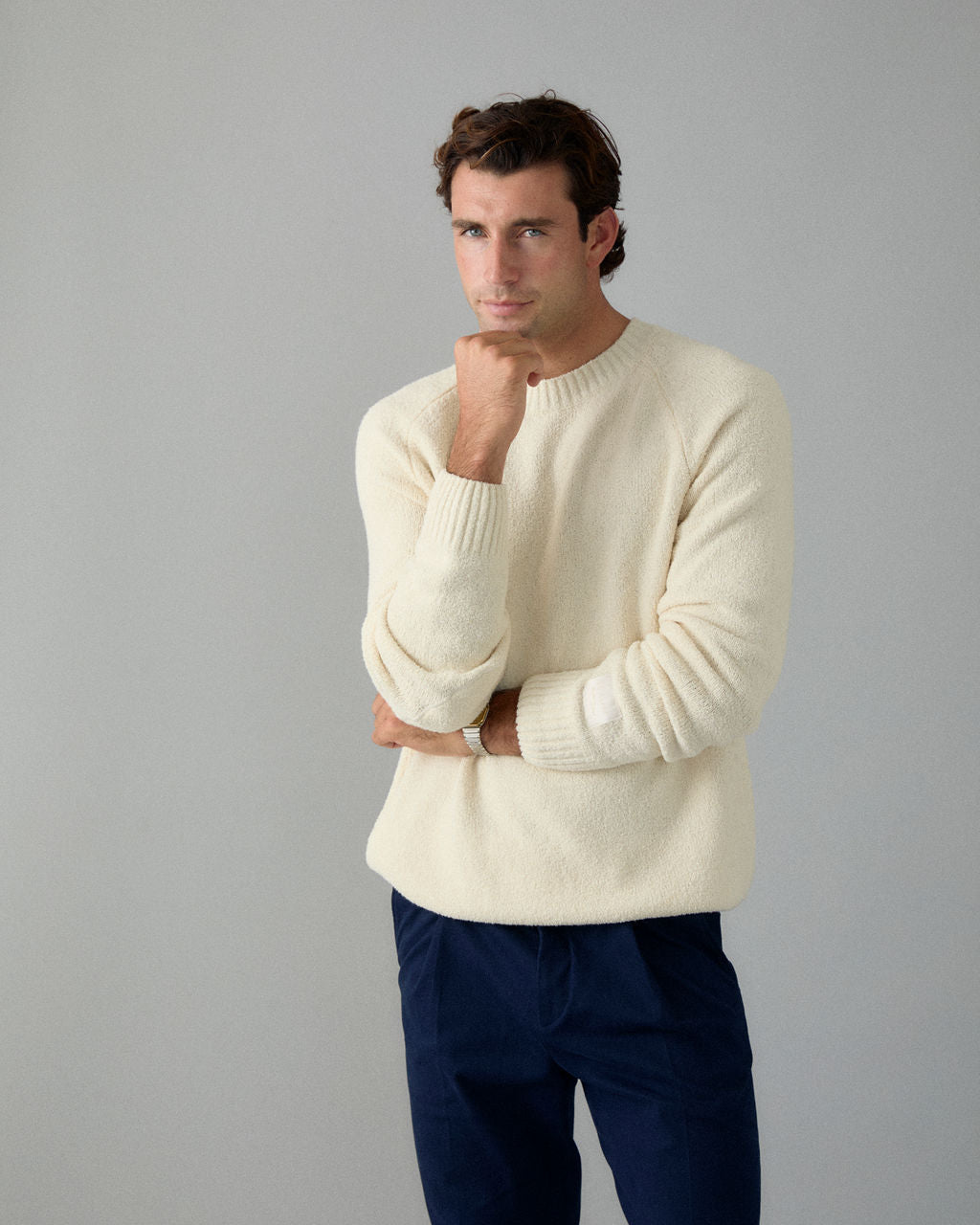 • Knitted elbow patches (tone on tone)