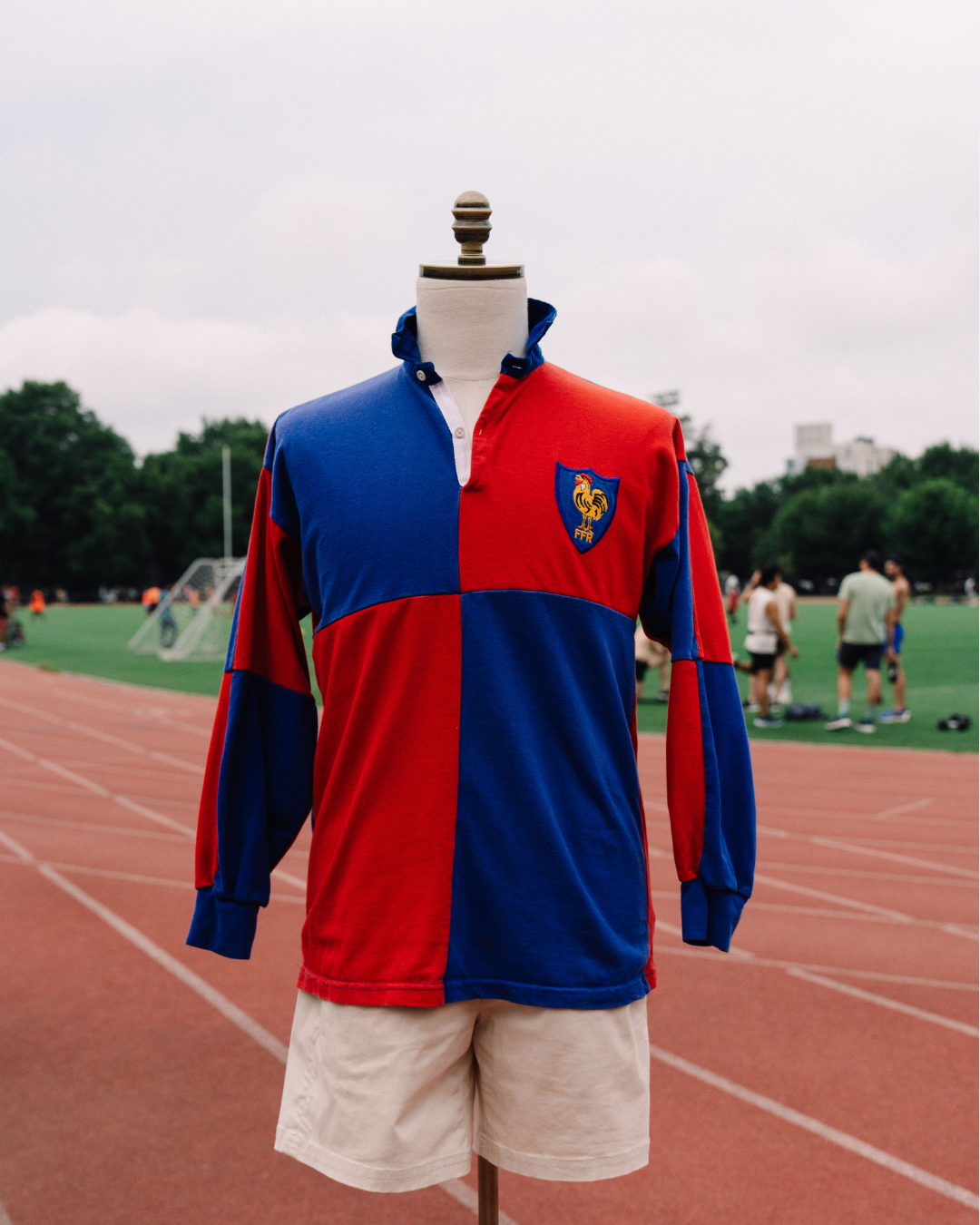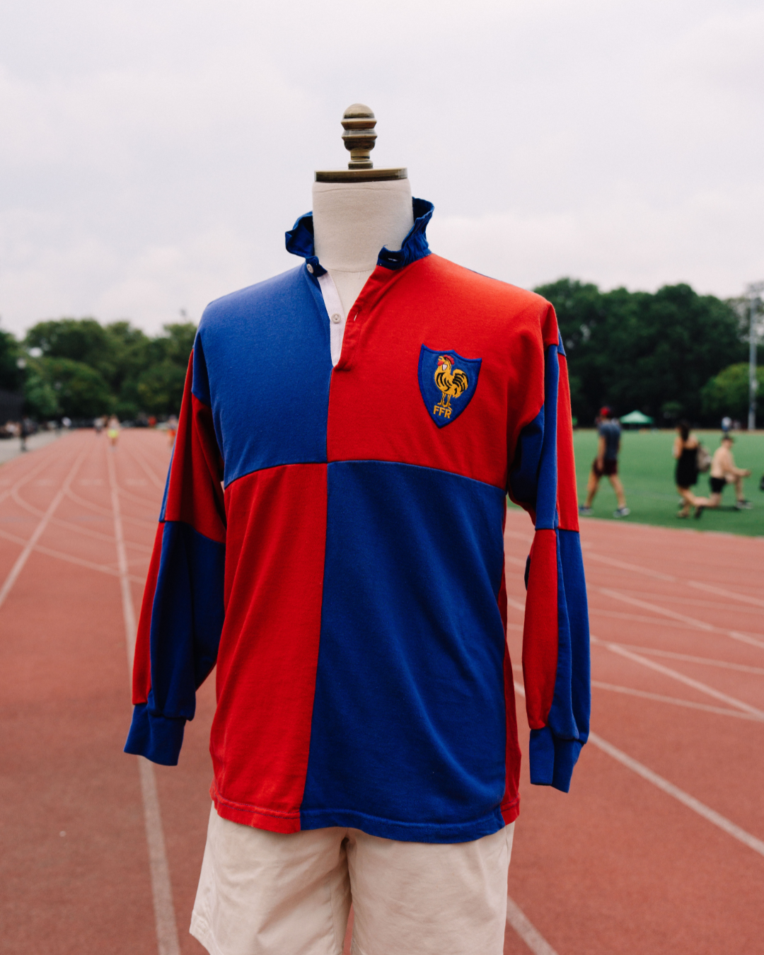 EXCLUSIVE AT LE ALFRÉ. This is an Official French National Team Rugby. Representing one of the best Rugby teams in the world, this multi-colored piece is both classy and comfortable, making it extremely versatile. Painted in blue and red and iconic rooster, it shows France's strong national pride.
