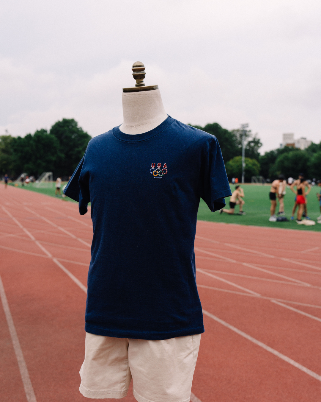 EXCLUSIVE AT LE ALFRÉ. This is a Vintage USA Olympic Tee, made in the USA. Its simple design highlights the United States' pride in the Olympics. This tee is perfect for a workout or wearing out casually for drinks, it's a balanced mix of comfort and simplicity wherever you go.