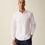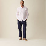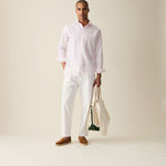 This cotton-linen blend shirt runs slightly slimmer and more fitted than our oxford shirts. If you are in between sizes, please size up.