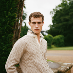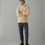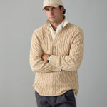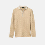 Light Camel Cotton Cable Knit Rugby