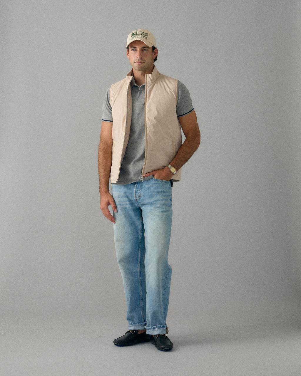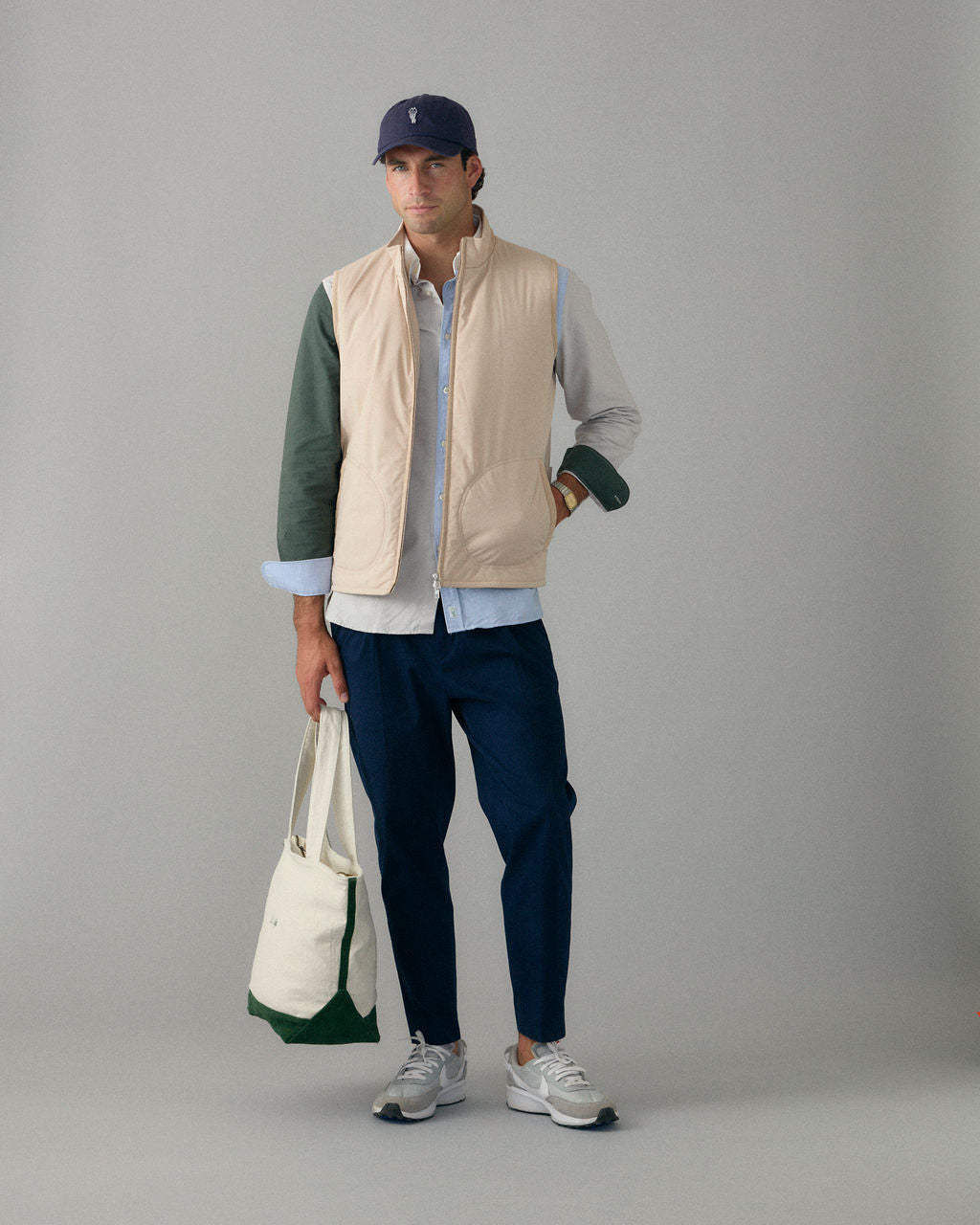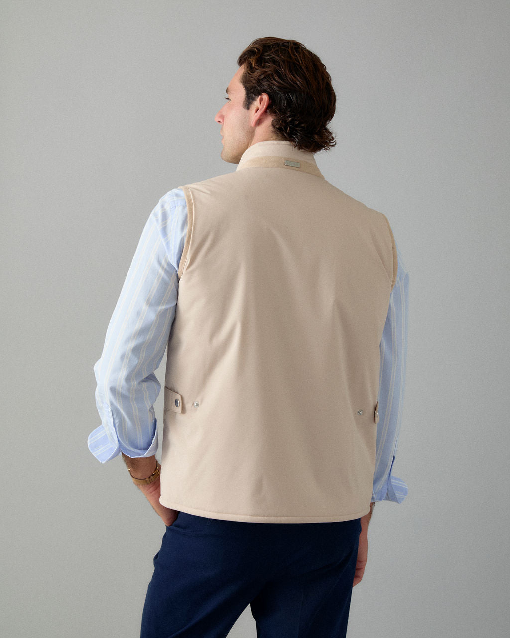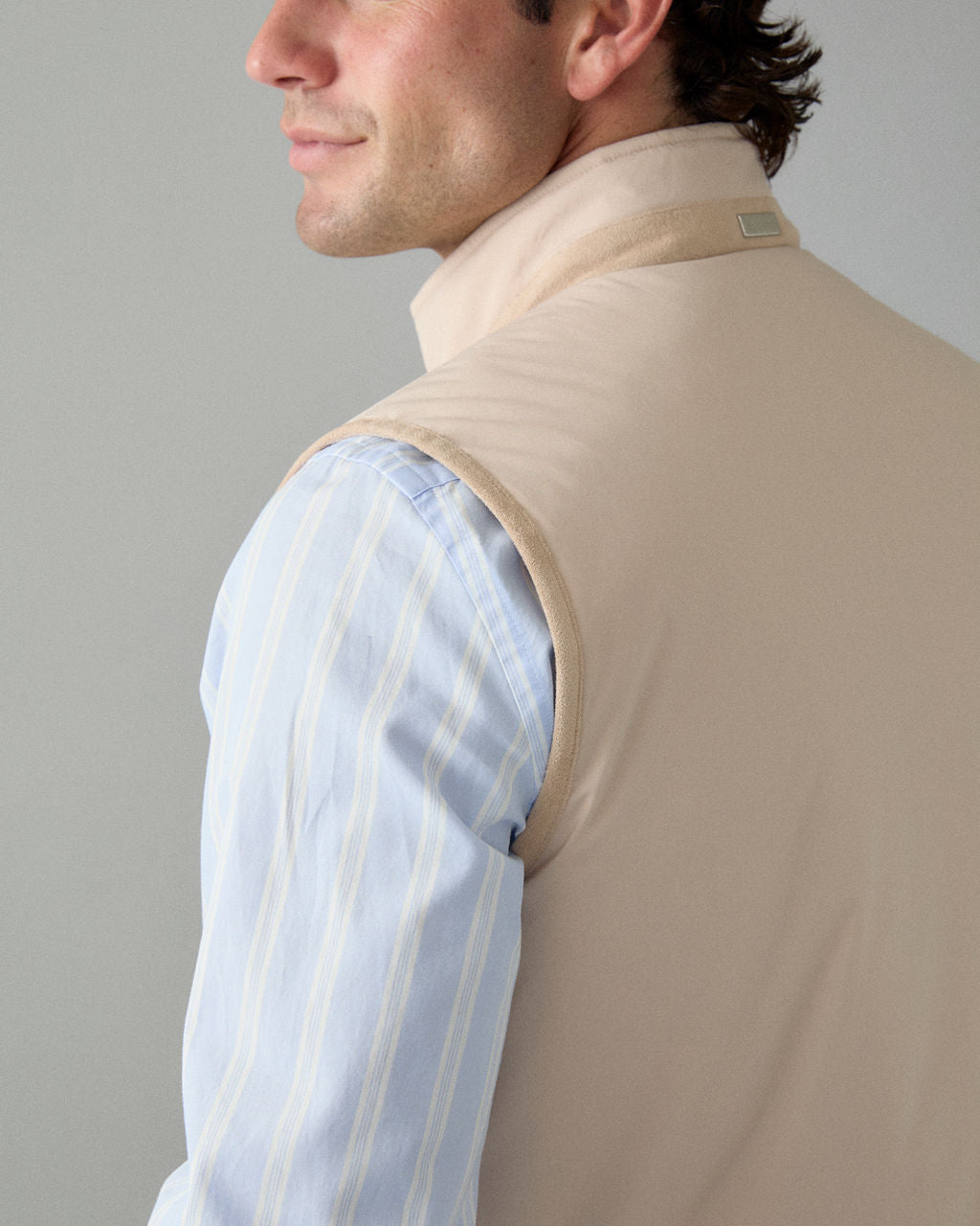 A lightweight padded gilet for a sophisticated business casual look. Made with a durable water-resistant outer-shell combined with elegant suede details for a sporty & classy design that you can wear for any occasion.
