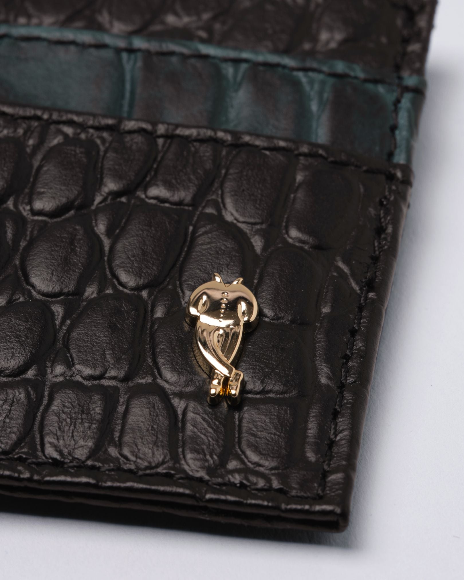 Crocodile embossed leather cardholder handcrafted in Italy. Five slots for all your cash and cards.