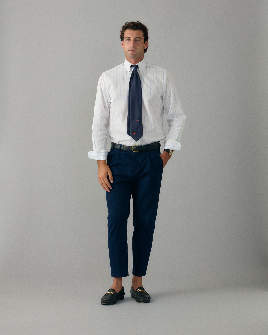 A cool and casual dress shirt for the office & handling your business after. Soft, durable & lightweight men's dress shirting fabric handcrafted from the oldest fabric mill in Portugal. A custom pattern designed in New York.