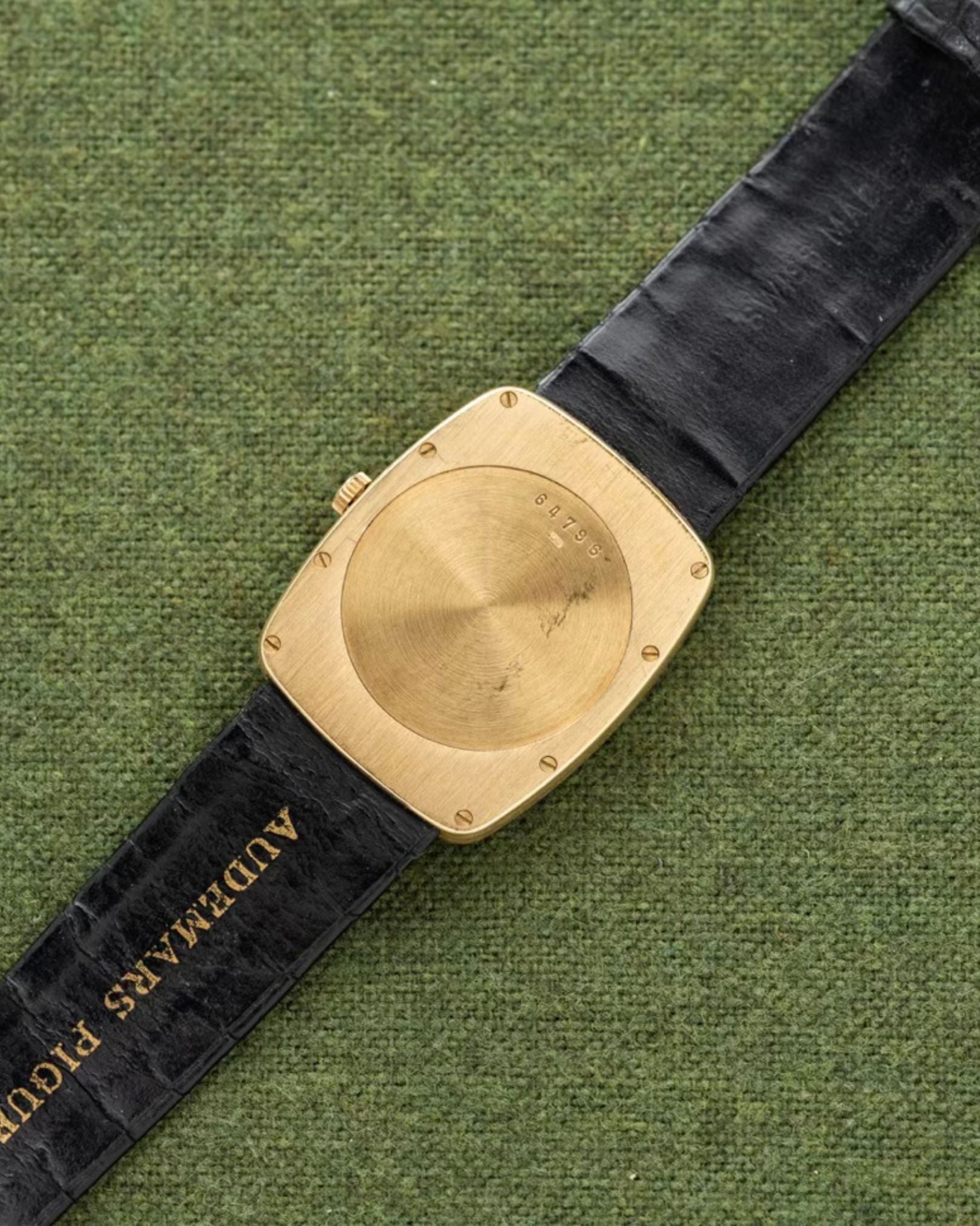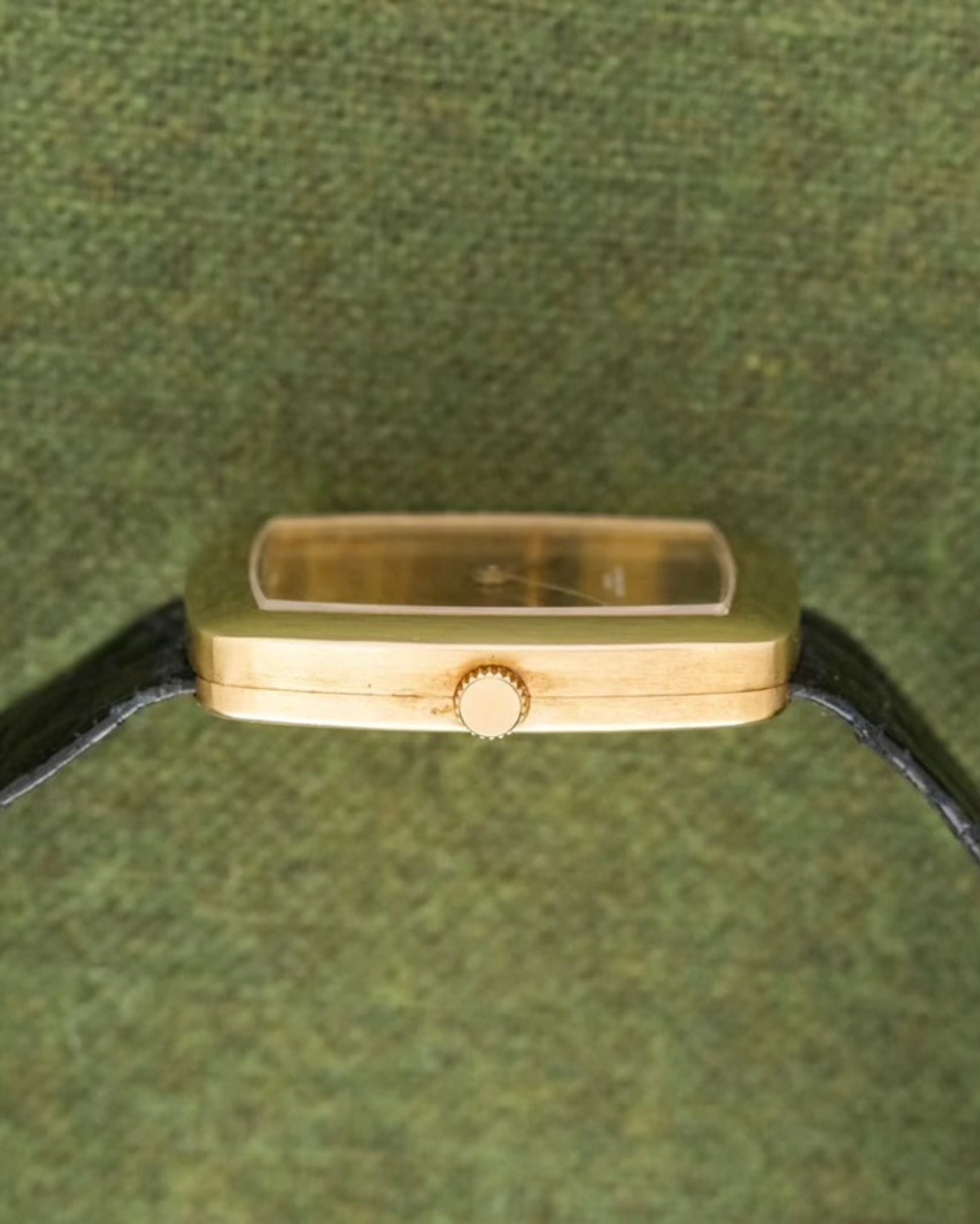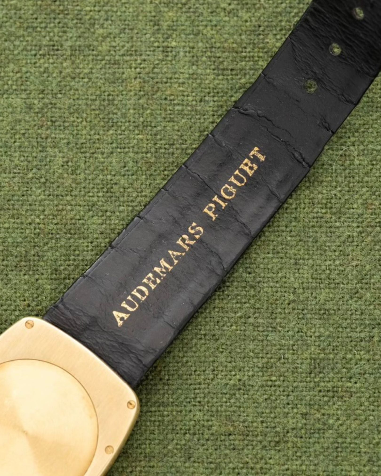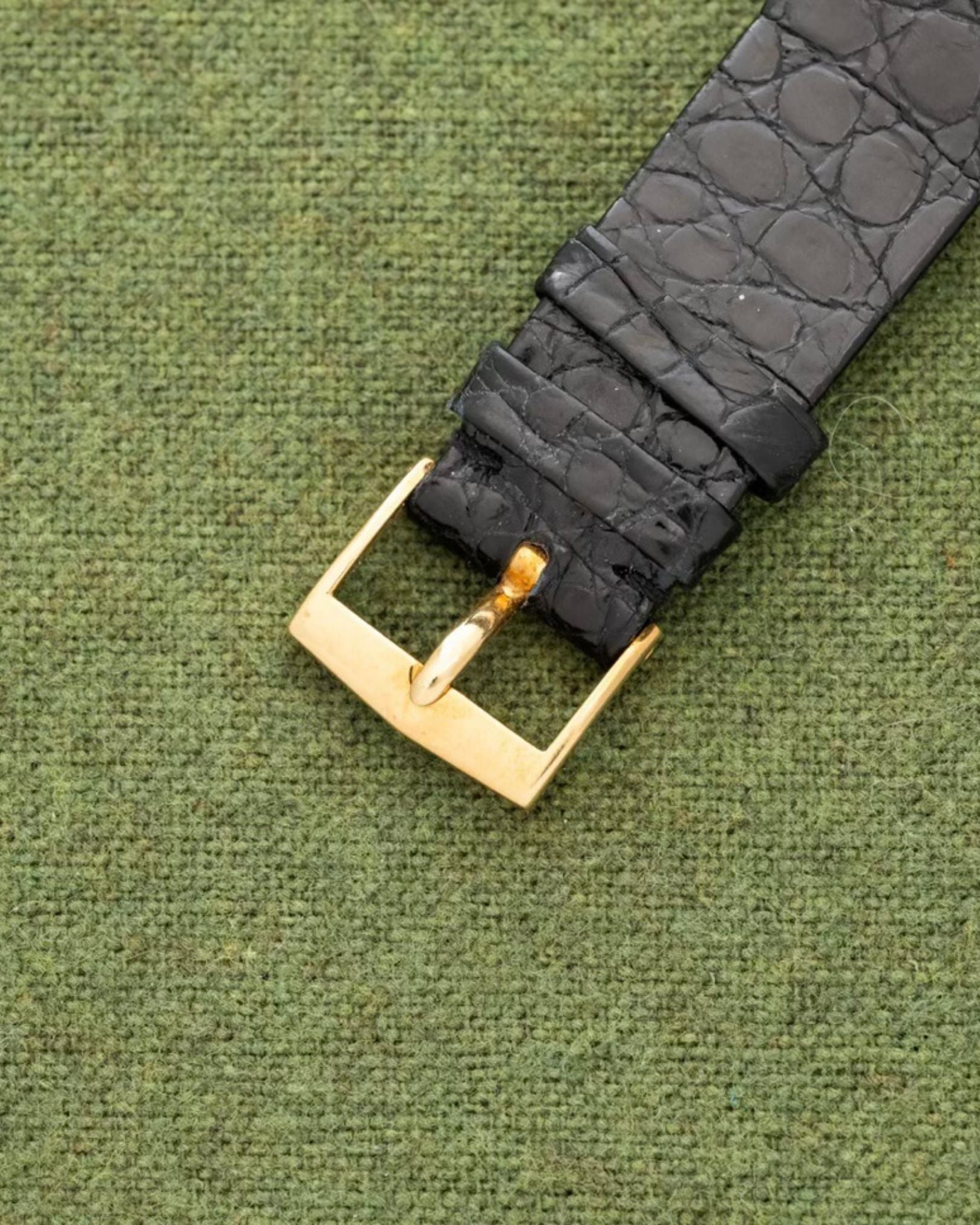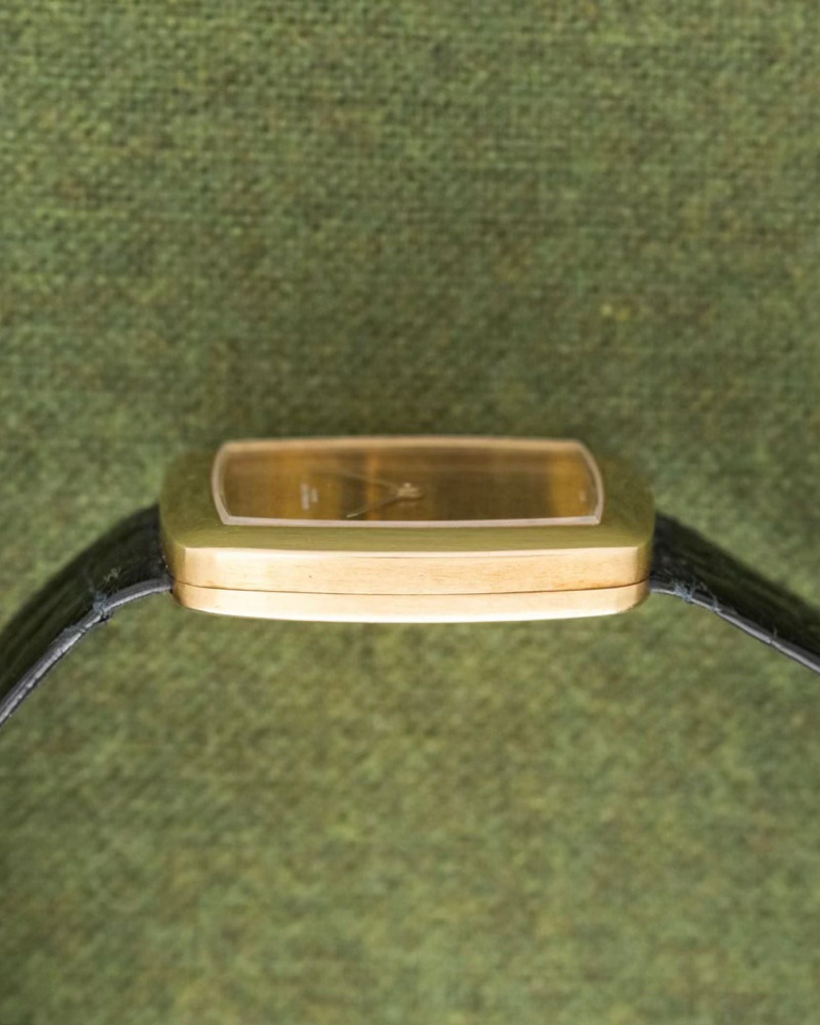 EXCLUSIVE AT LE ALFRÉ This is a clean black & gold Audemars Piguet Tigers Eye Stone. A timeless piece from the 1970s, this Swiss-made watch is a simple & elegant addition to any occasion.