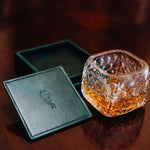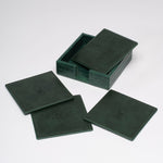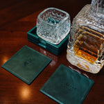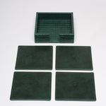 Impress your guests with this beautiful & unique set of limited edition coasters in hunter green vegan leather with a hunter green crocodile embossed coaster holder. Includes 4 coasters & holder.