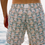 This one-of-a-kind swim trunk is handcrafted in Italy using soft, brushed swim trunk fabric. A beautiful piece of art, our swim trunks feature a custom illustrative print that depicts our travels and lifestyle.