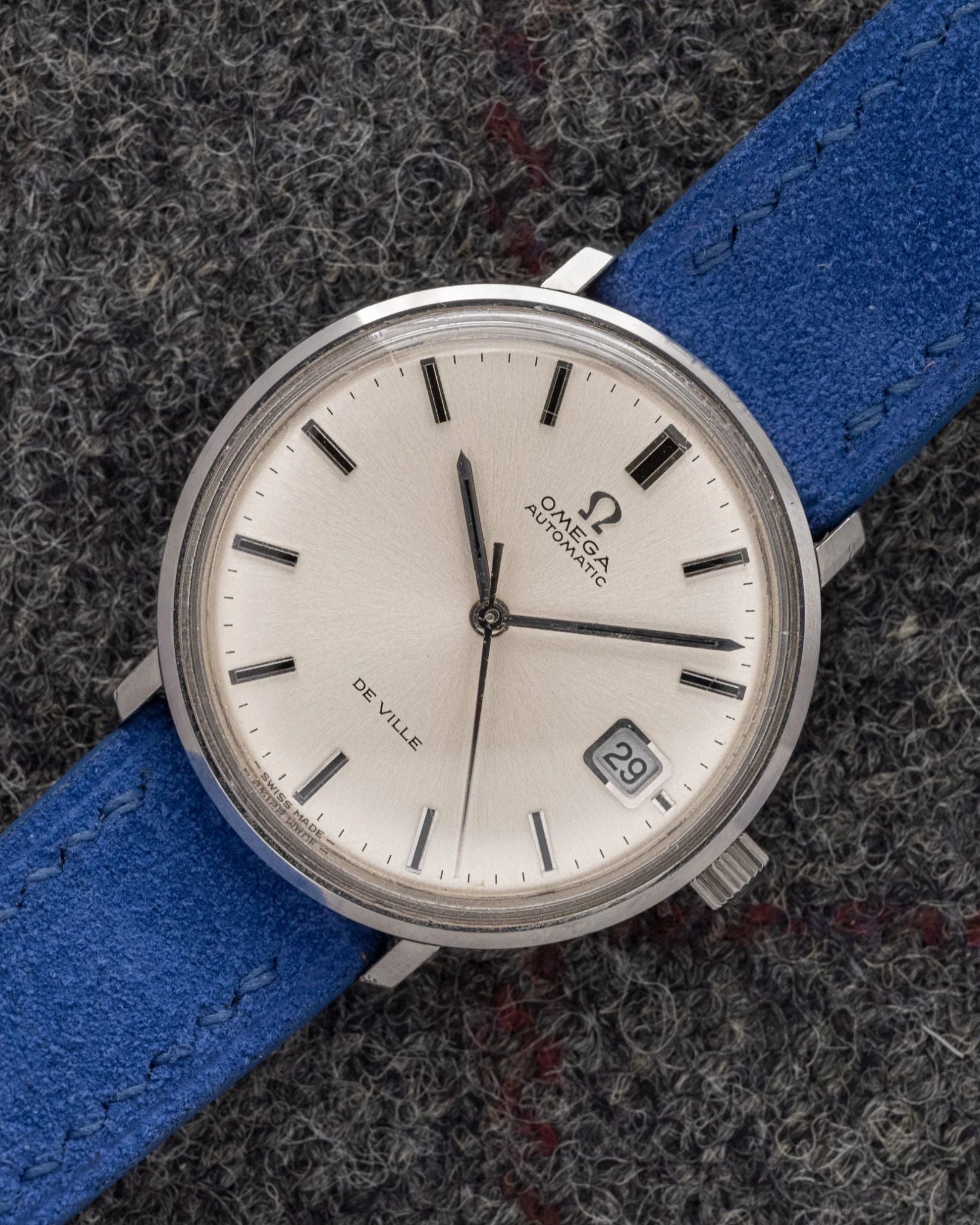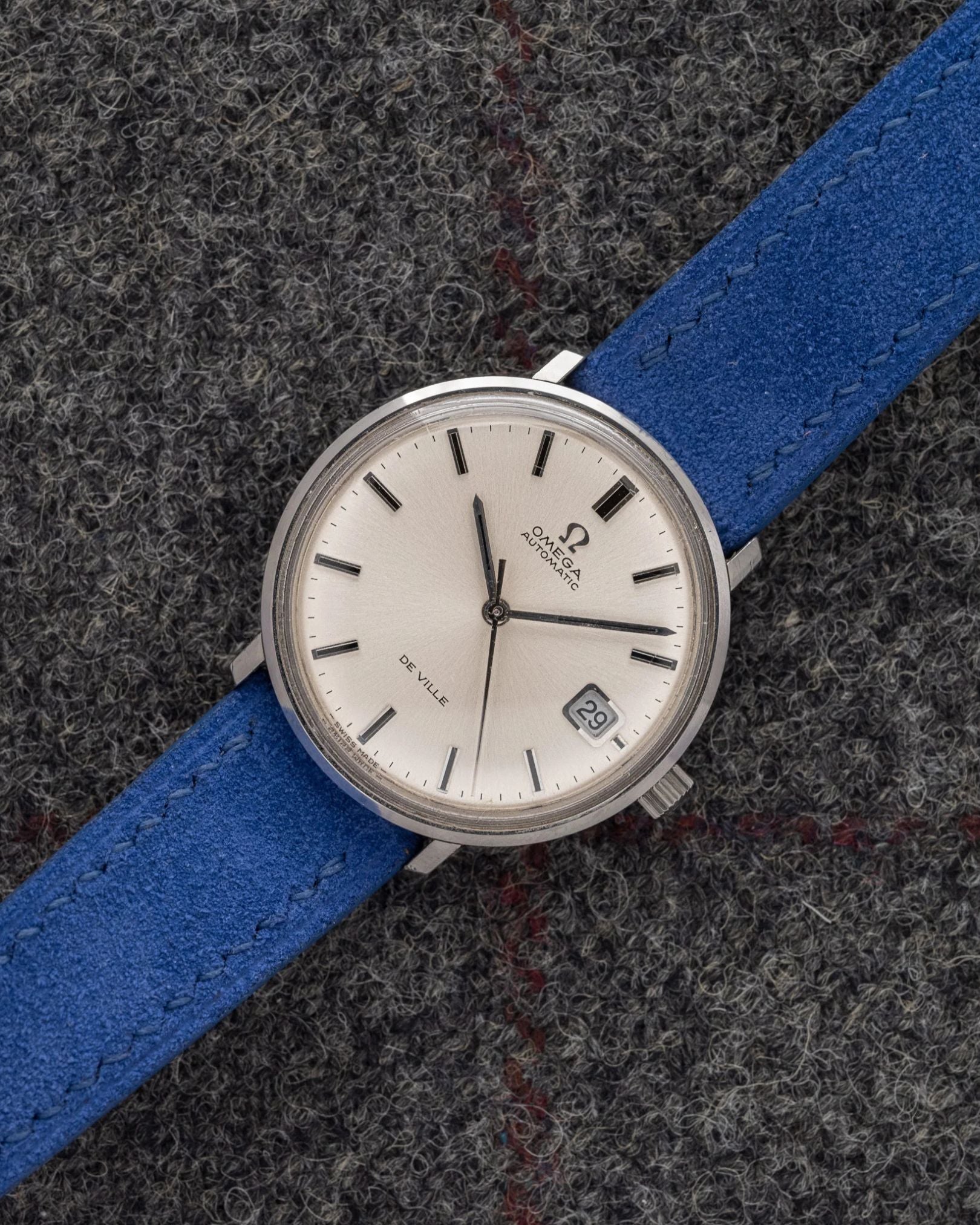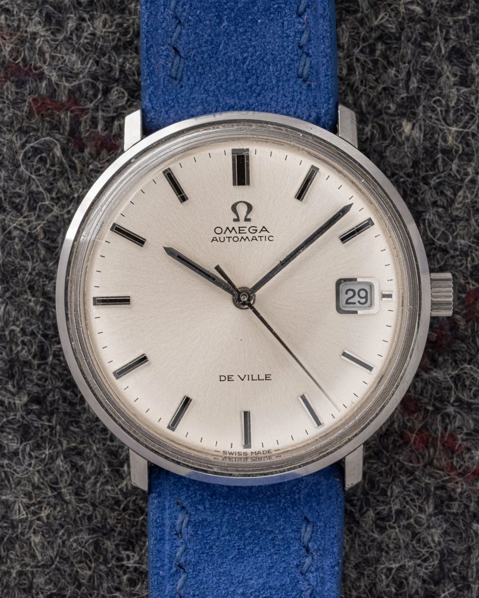 EXCLUSIVE AT LE ALFRÉ The Omega De Ville was introduced in 1960 and became sold out in the 1970s, winning several design awards. It has a unique combination of a sporty dress watch. This classic Omega has a sunburst dial and old-school jumping date. An incredible entry-level watch to start your vintage collection.