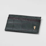 Crocodile embossed leather cardholder handcrafted in Italy. Five slots for all your cash and cards.