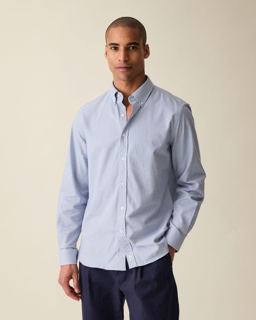 Brushed Cotton Blue Houndstooth Shirt