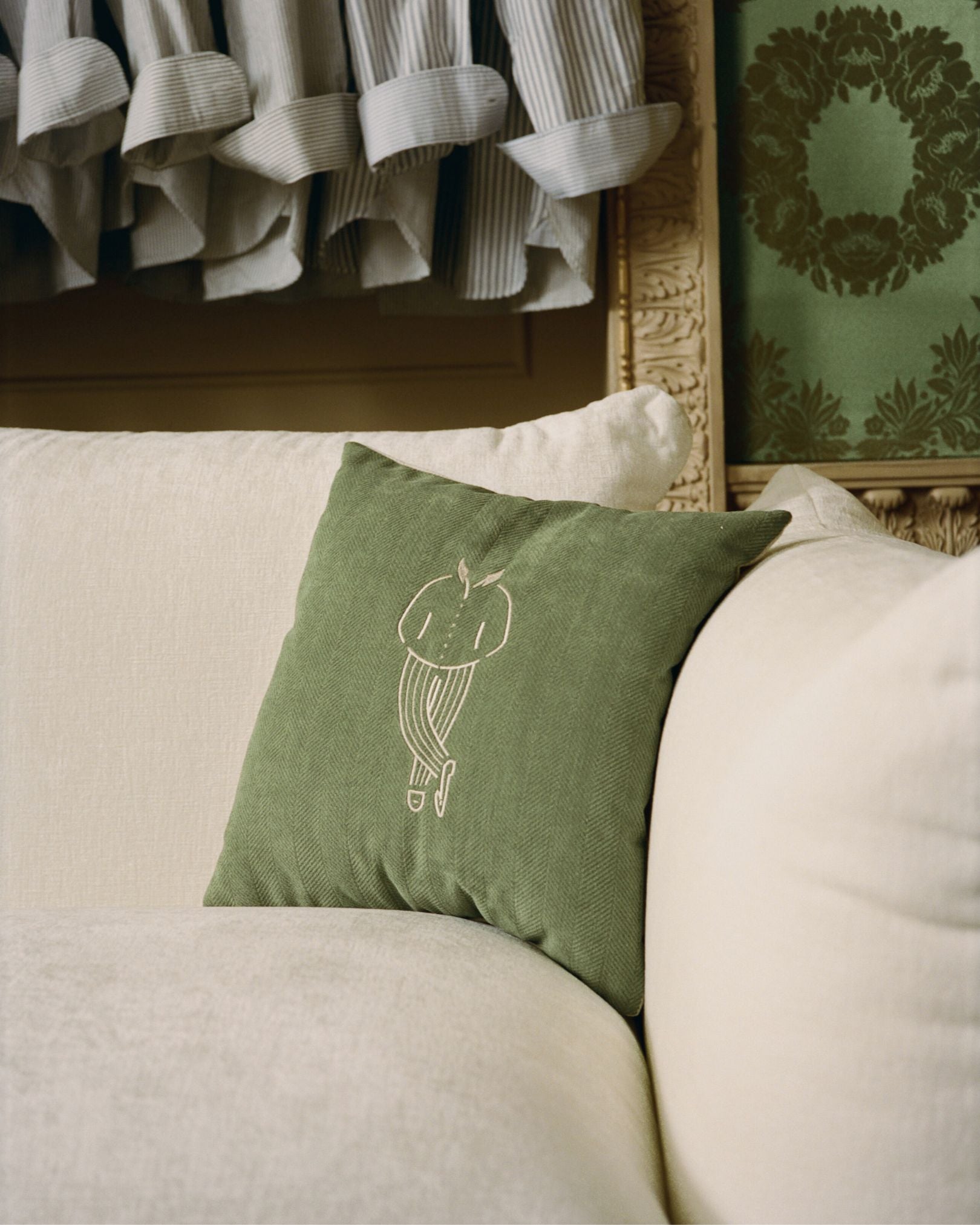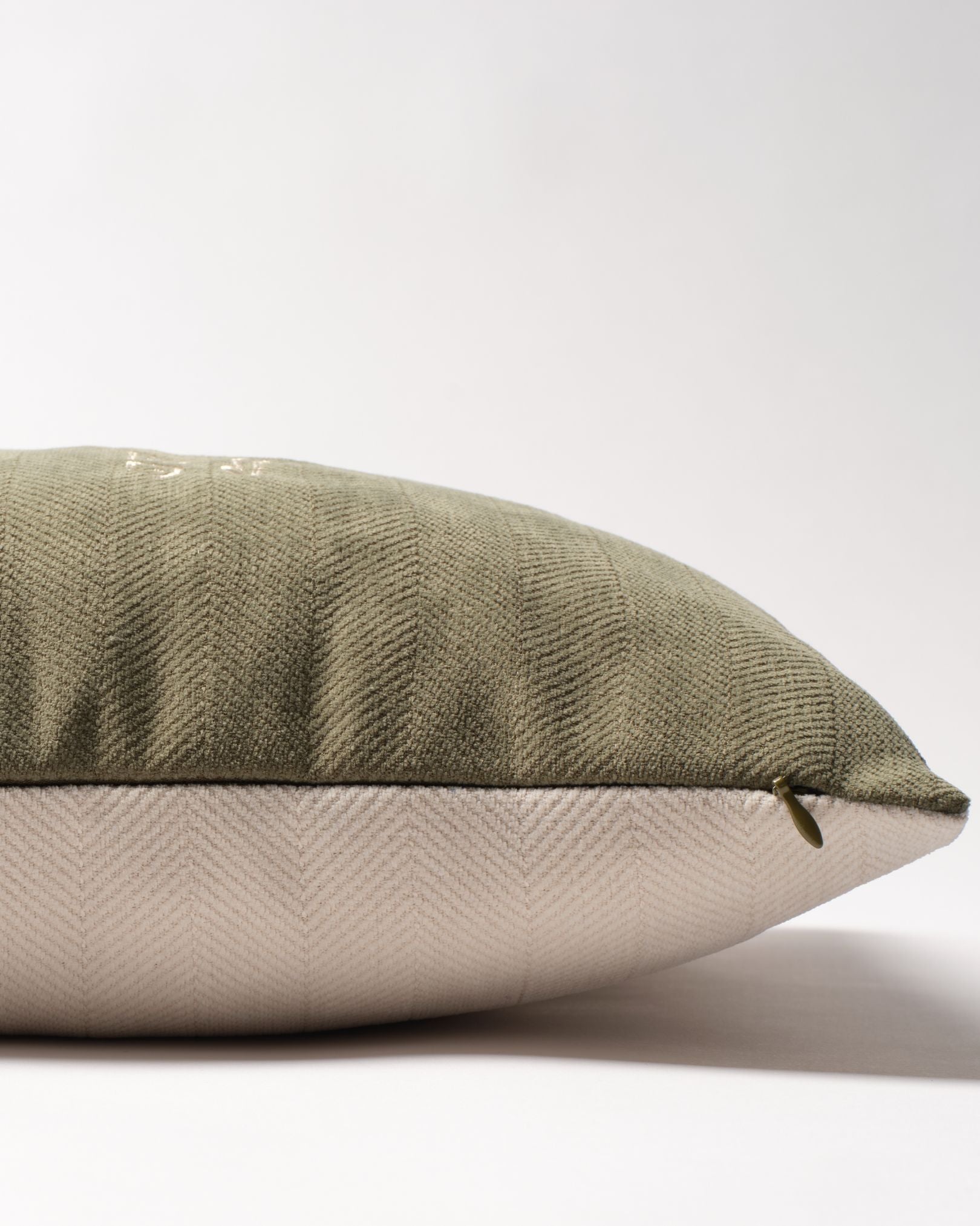 Soft, comfortable & elegant reversible pillow made with a beautiful herringbone design. Reversible with cream & olive green colorways.