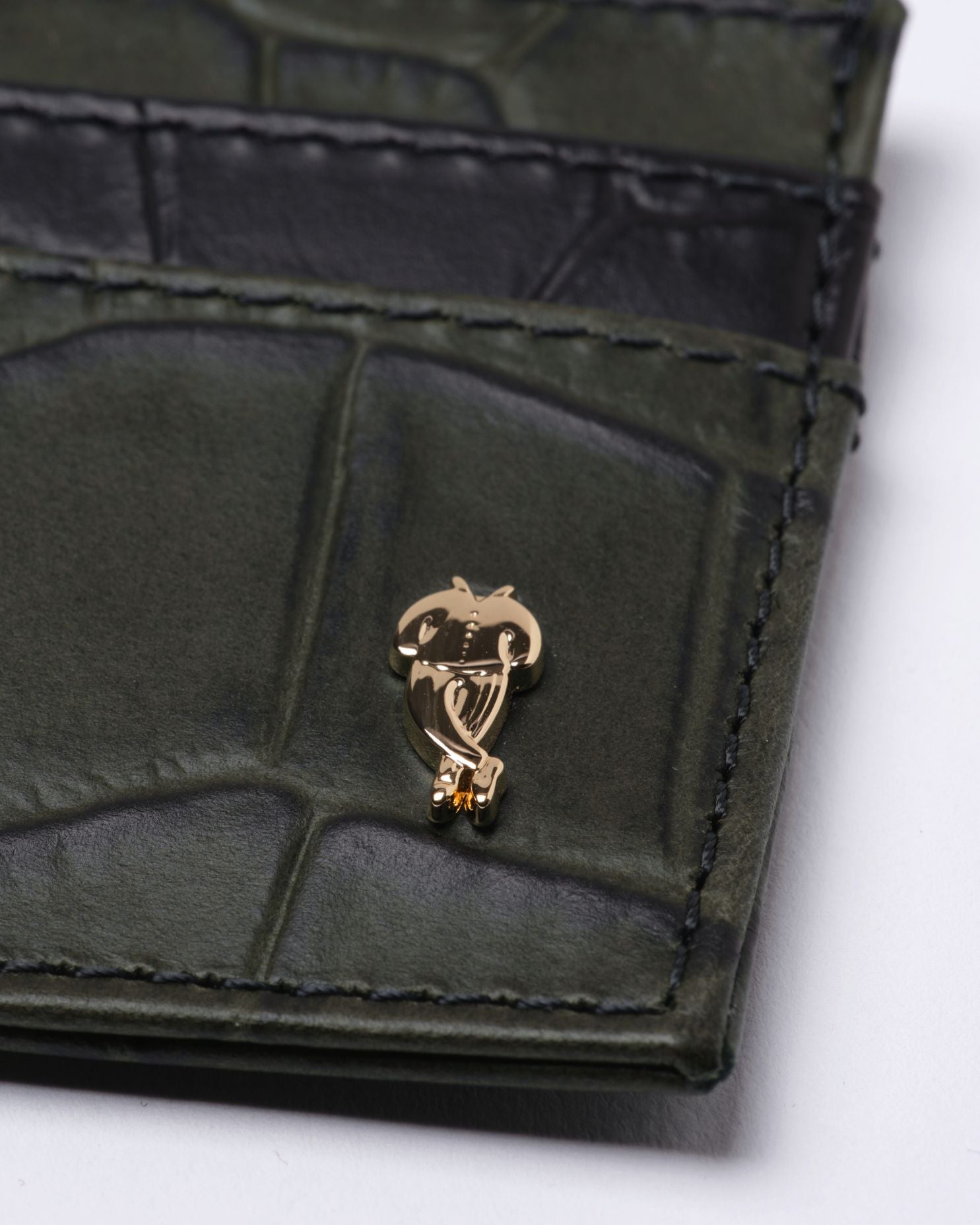 Crocodile embossed leather cardholder handcrafted in Italy. Five slots for all your cash and cards.