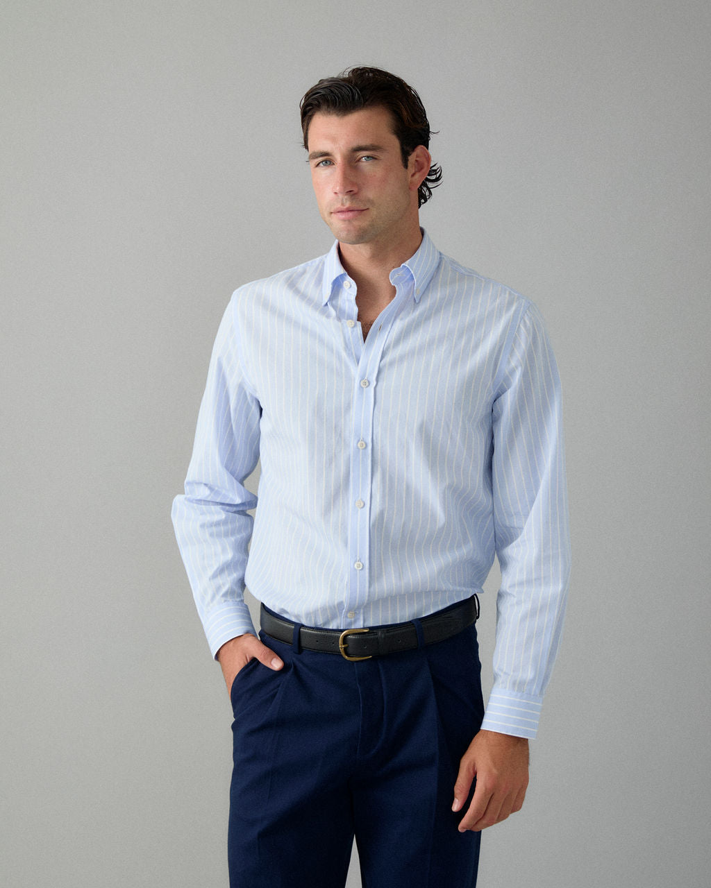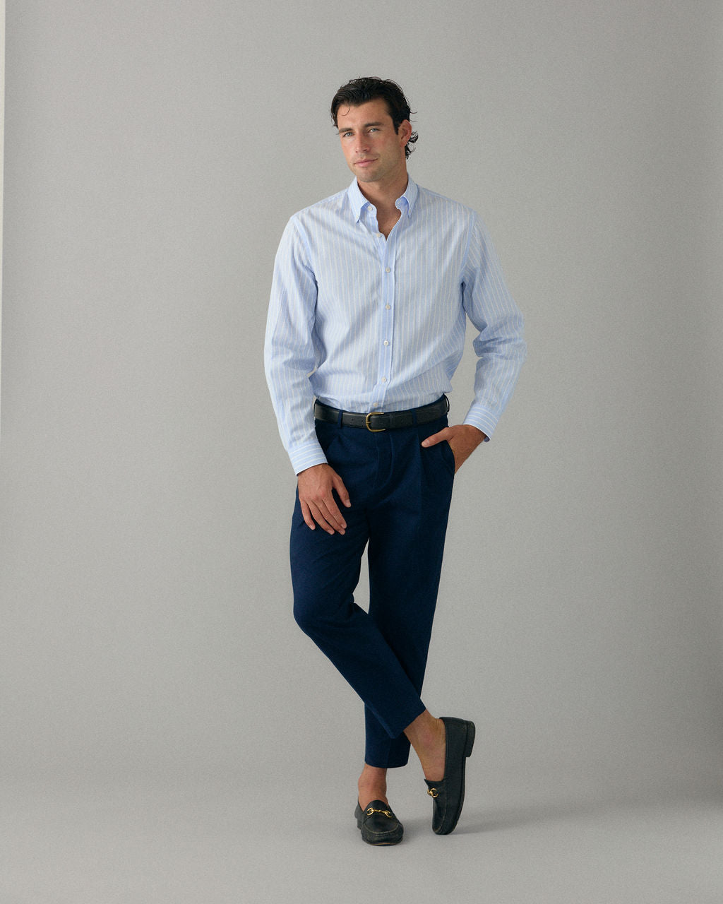 A cool and casual dress shirt for the office & handling your business after. Soft, durable & lightweight men's dress shirting fabric handcrafted from the oldest fabric mill in Portugal. A custom pattern designed in New York.