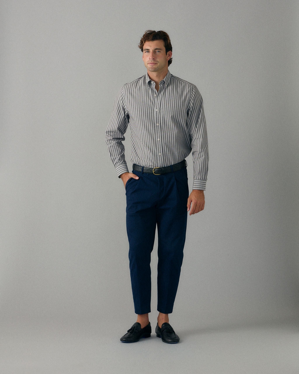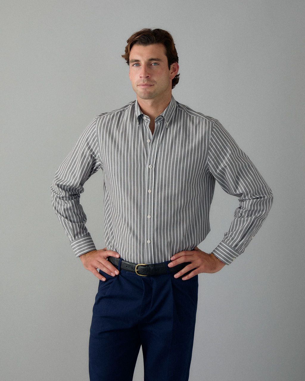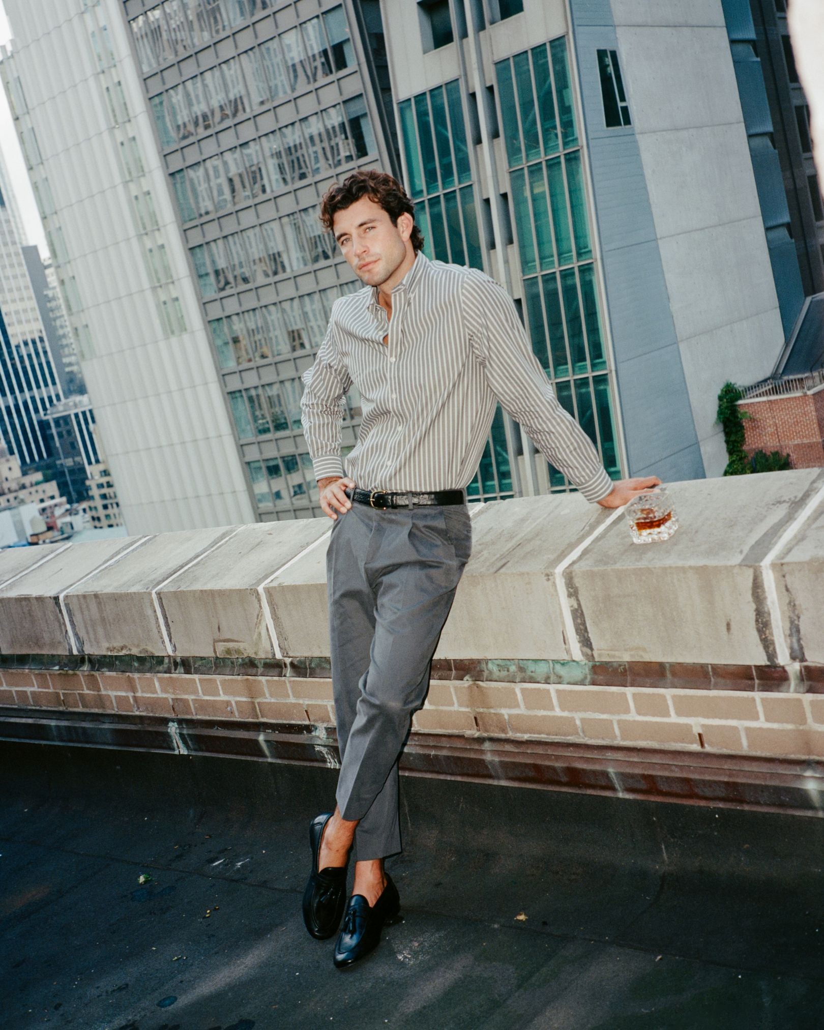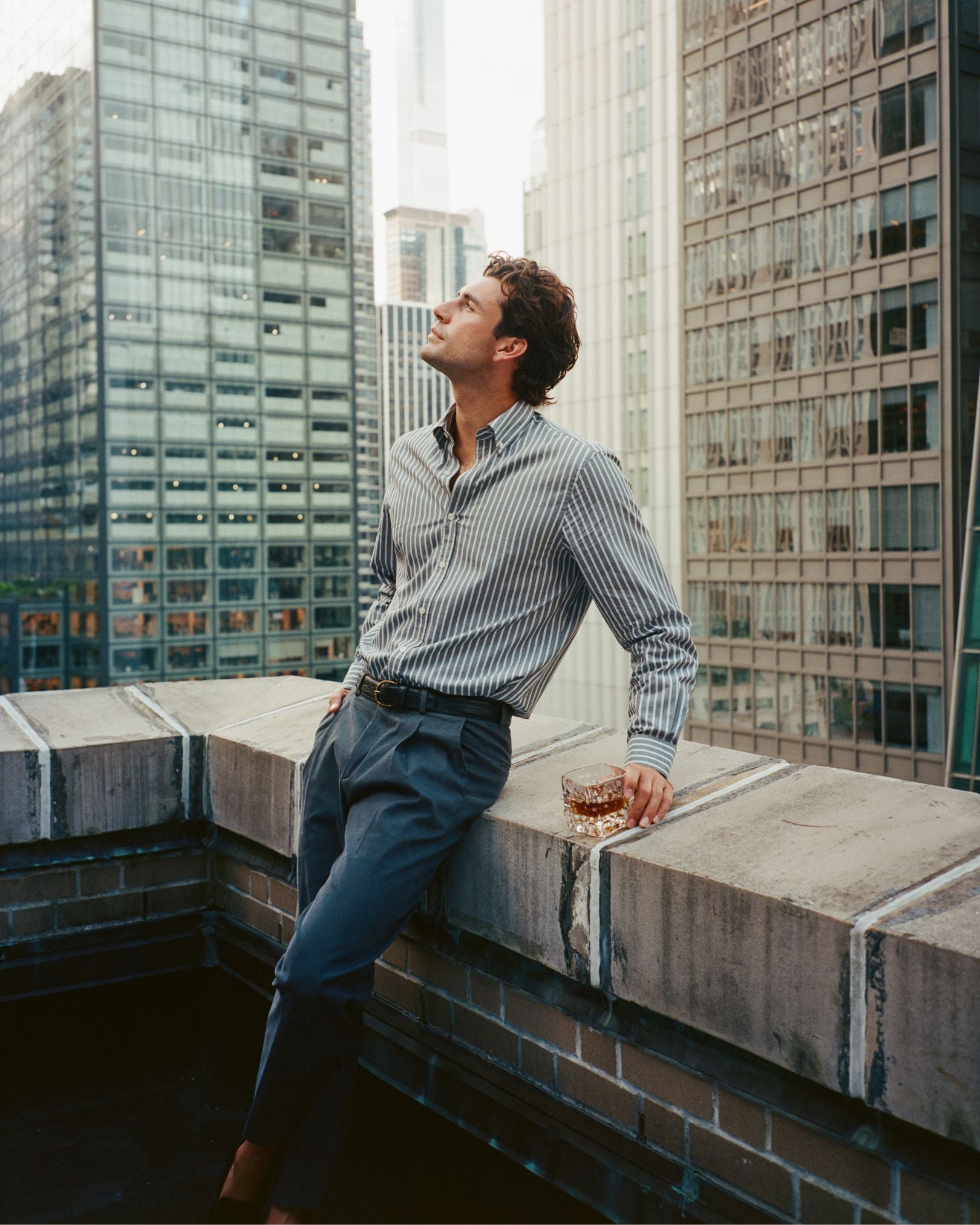 A cool and casual dress shirt for the office & handling your business after. Soft, durable & lightweight men's dress shirting fabric handcrafted from the oldest fabric mill in Portugal. A custom pattern designed in New York.