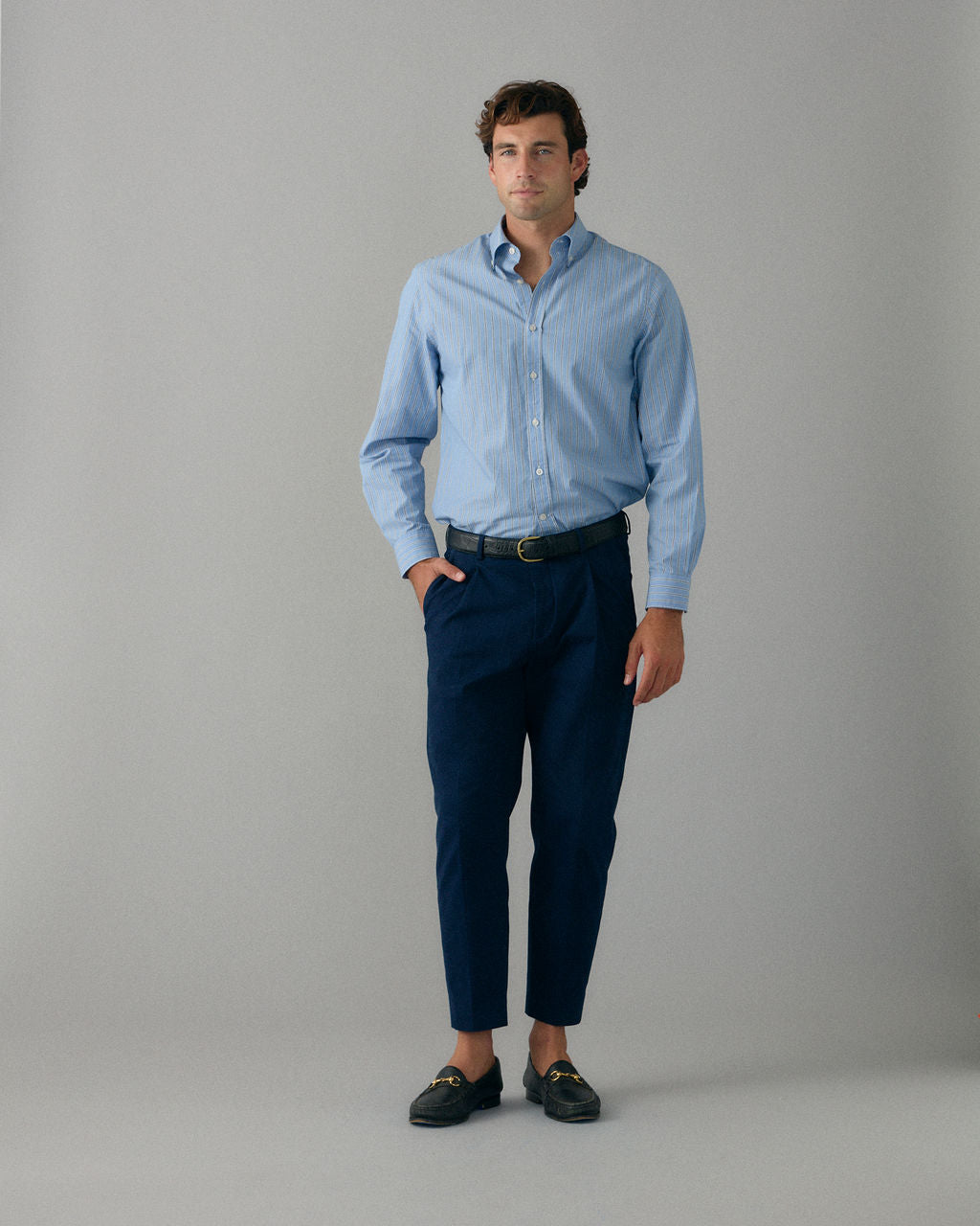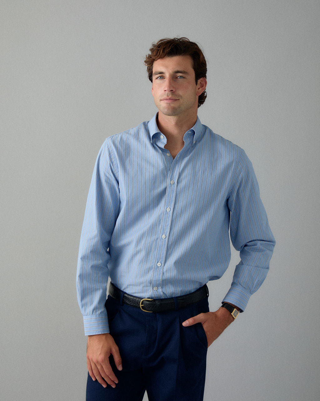 A cool and casual dress shirt for the office & handling your business after. Soft, durable & lightweight men's dress shirting fabric handcrafted from the oldest fabric mill in Portugal. A custom pattern designed in New York.