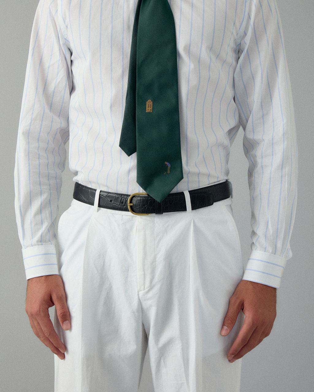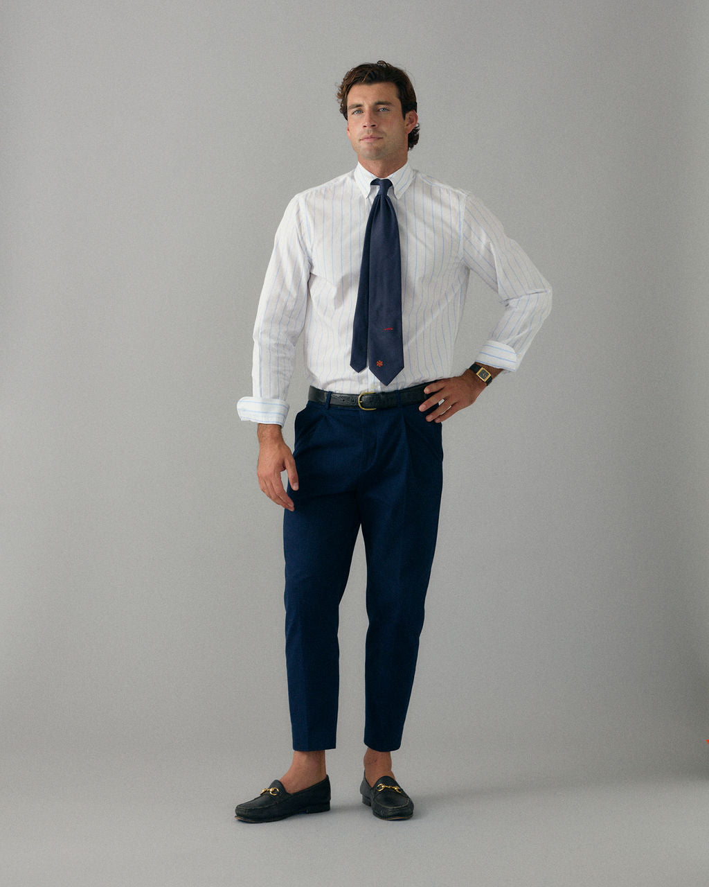 A cool and casual dress shirt for the office & handling your business after. Soft, durable & lightweight men's dress shirting fabric handcrafted from the oldest fabric mill in Portugal. A custom pattern designed in New York.