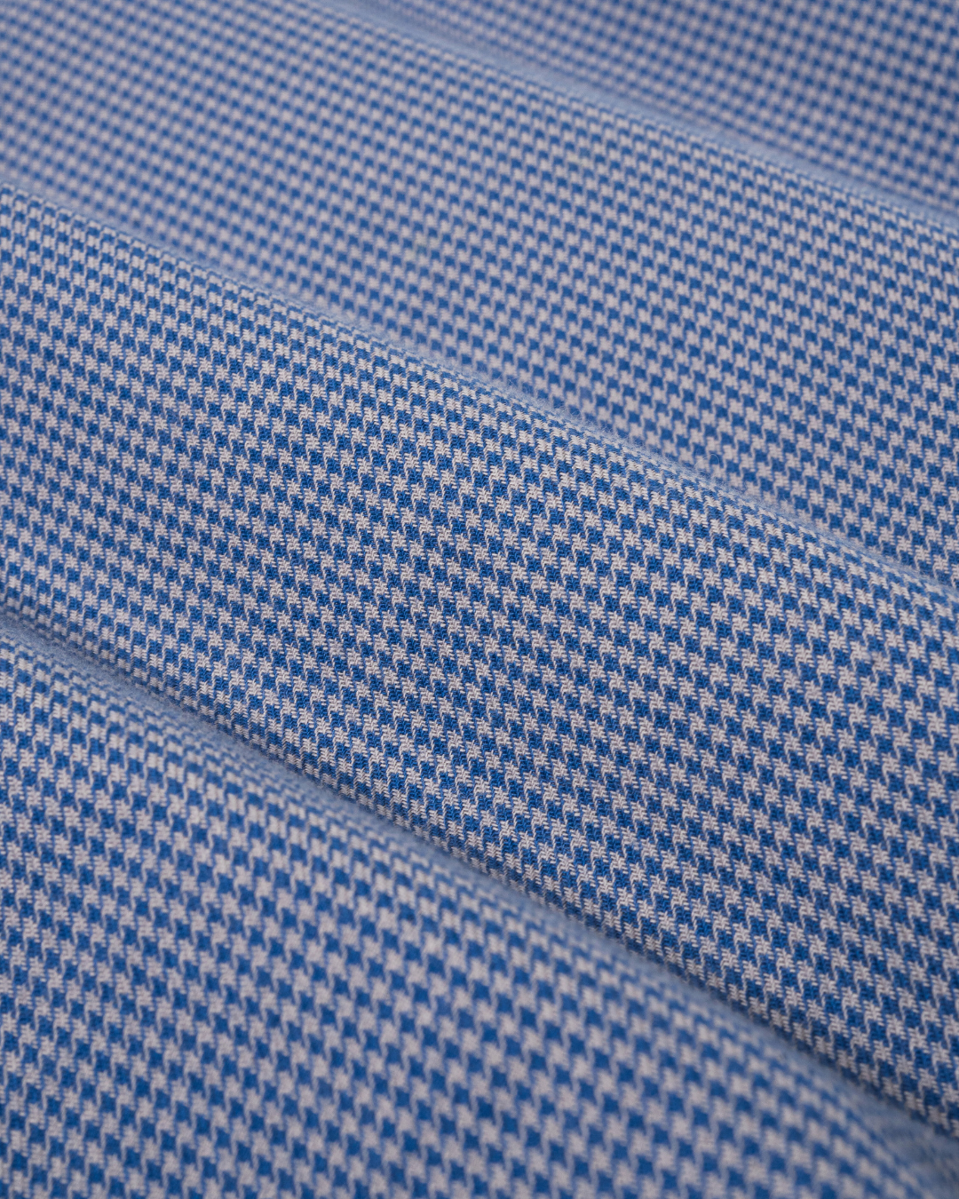 This shirt is handcrafted using high quality shirting fabric sourced from the oldest fabric mill in Portugal. It's natural, lightweight & durable construction makes for a beautiful weave in a custom houndstooth pattern.