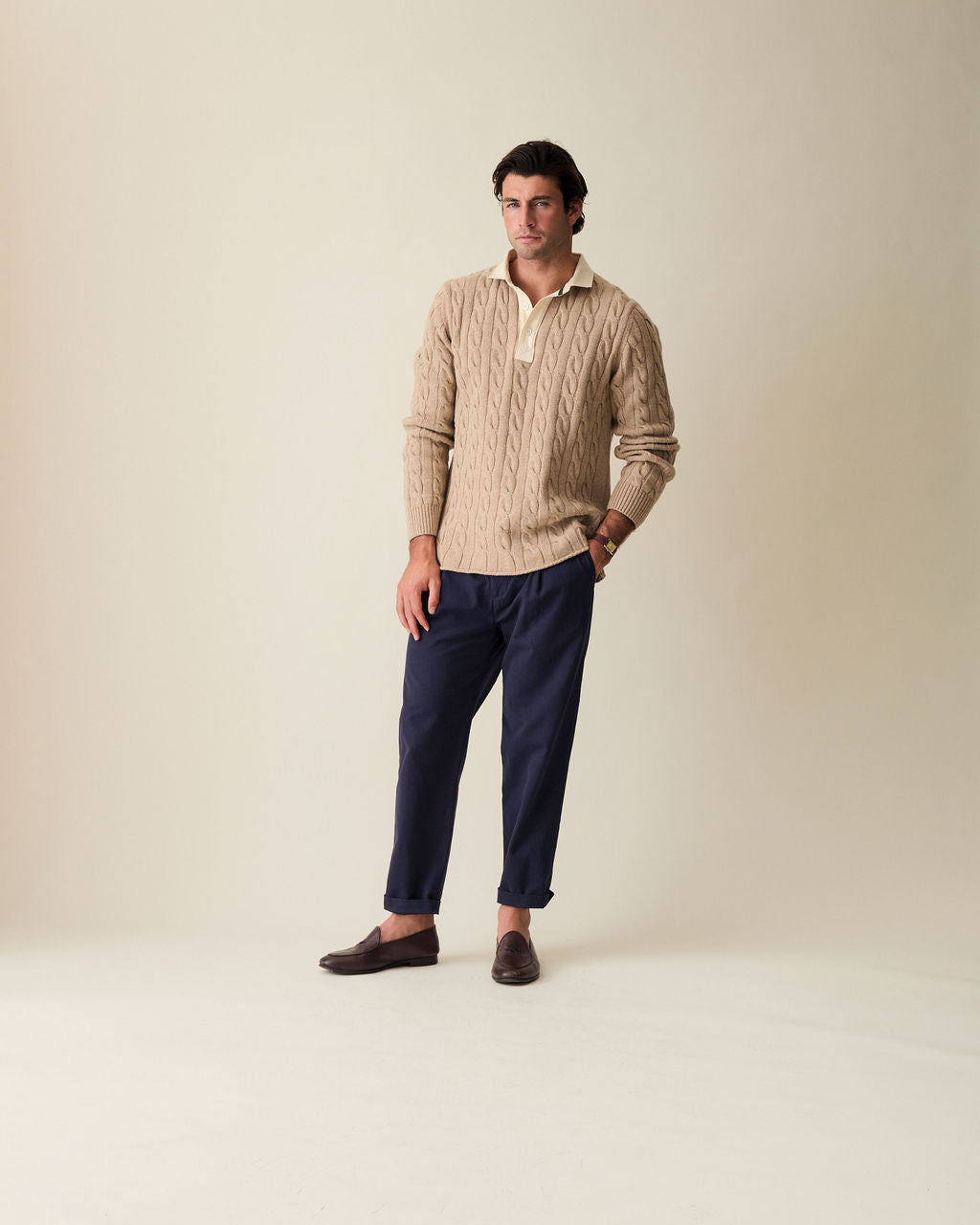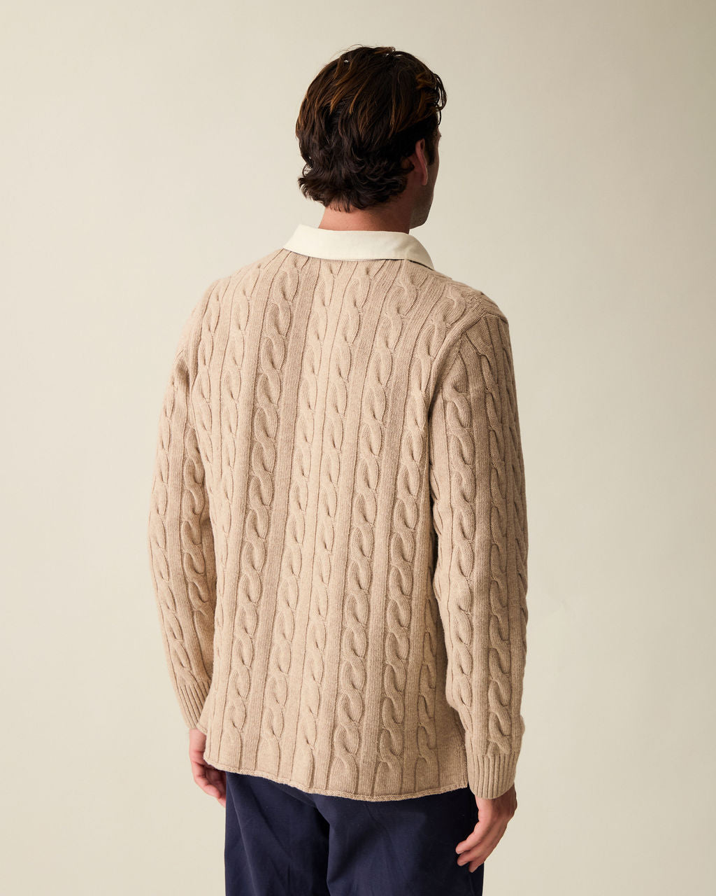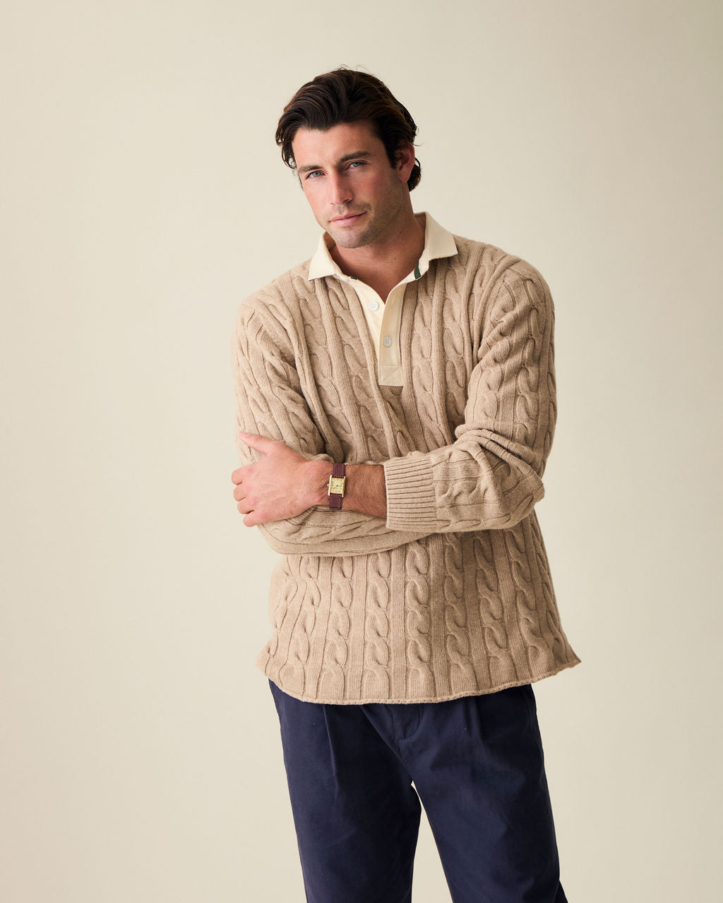 Combining our best-selling rugby shirt collar with a beautiful cable knit design, this item is the first ever of it's kind handcrafted in Turkey. Made with beautiful, soft & comfortable with extra-fine Turkish cotton. A style unique to a certain lifestyle of simplicity, elegance & luxury.