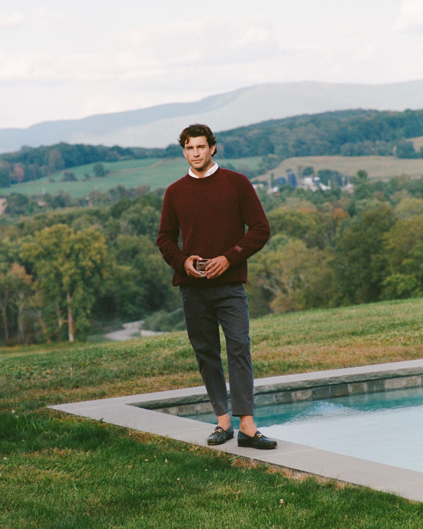 This knit sweater runs slightly relaxed. If you are in between sizes, please choose the smaller size for a more fitted style.