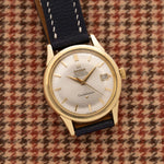EXCLUSIVE AT LE ALFRÉ in collaboration with our good friends at Huntington Company, Alfré's verified vintage watch dealer. One of the most iconic Omega styles ever created, the Omega Constellation. This is a very rare jumbo case (36.5mm) in incredible condition with a beautiful gold case & details, dating all the way back to the 1960s.