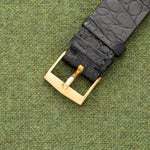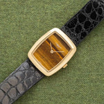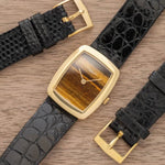 EXCLUSIVE AT LE ALFRÉ This is a clean black & gold Audemars Piguet Tigers Eye Stone. A timeless piece from the 1970s, this Swiss-made watch is a simple & elegant addition to any occasion.