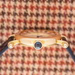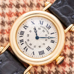 EXCLUSIVE AT LE ALFRÉ This is a vintage 18K gold Cartier Diabolo Mecanique from the 90s. While most Diabolos feature a quartz movement, the CPCP line includes a mechanical movement and incredible guilloche detail. This CPCP Diabolo also features a beautiful Roman dial; this piece is in incredible condition with almost no signs of wear.
