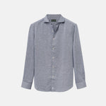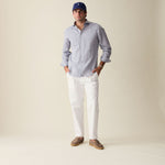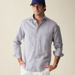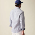 This cotton-linen blend shirt runs slightly slimmer and more fitted than our oxford shirts. If you are in between sizes, please size up.