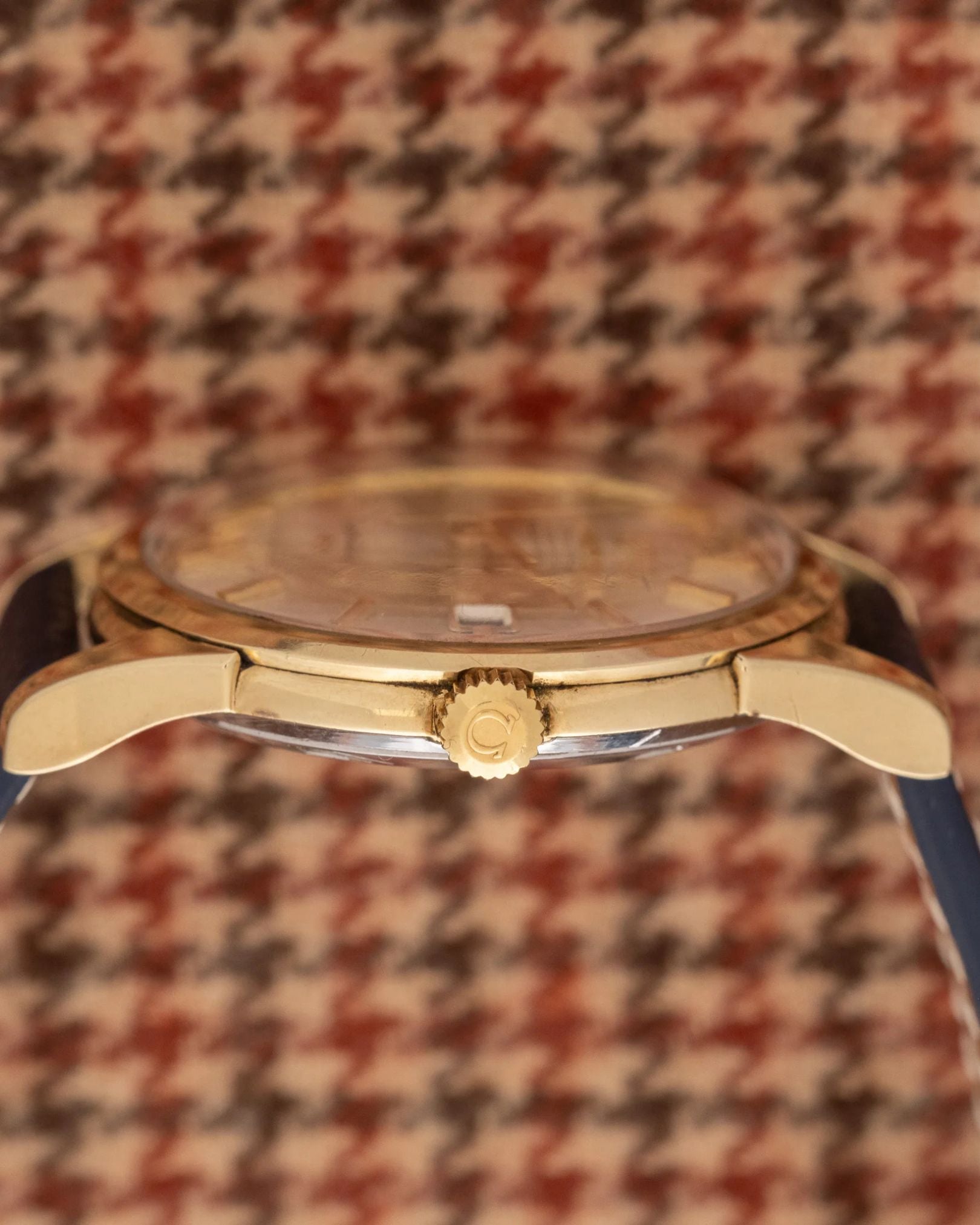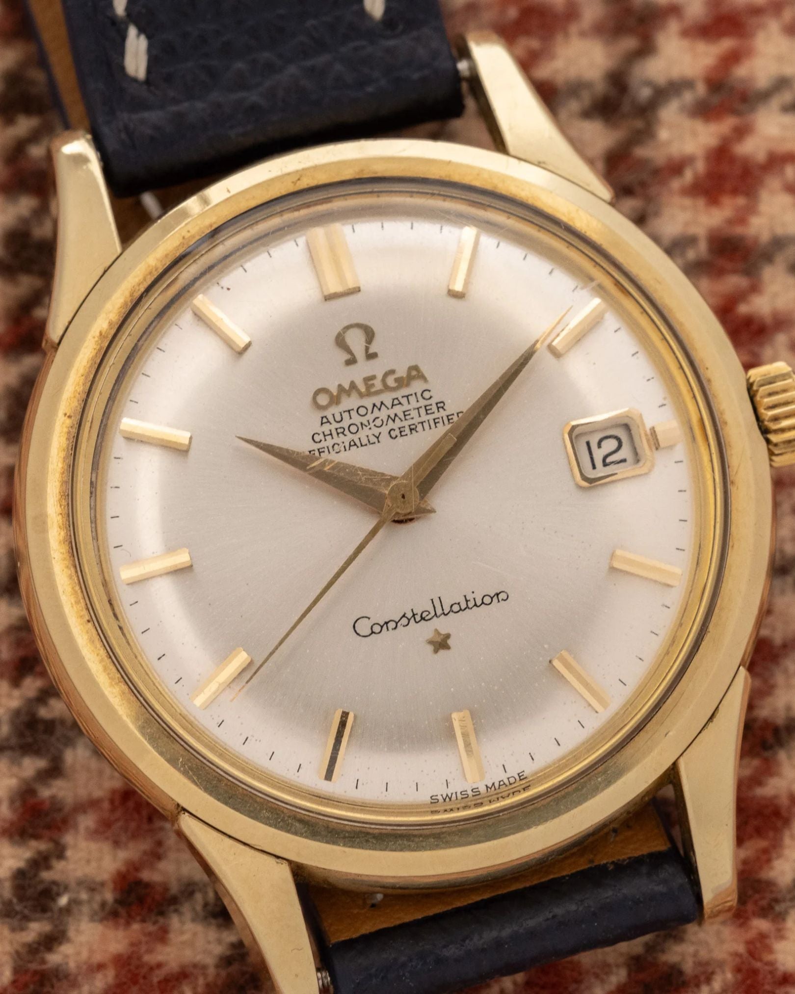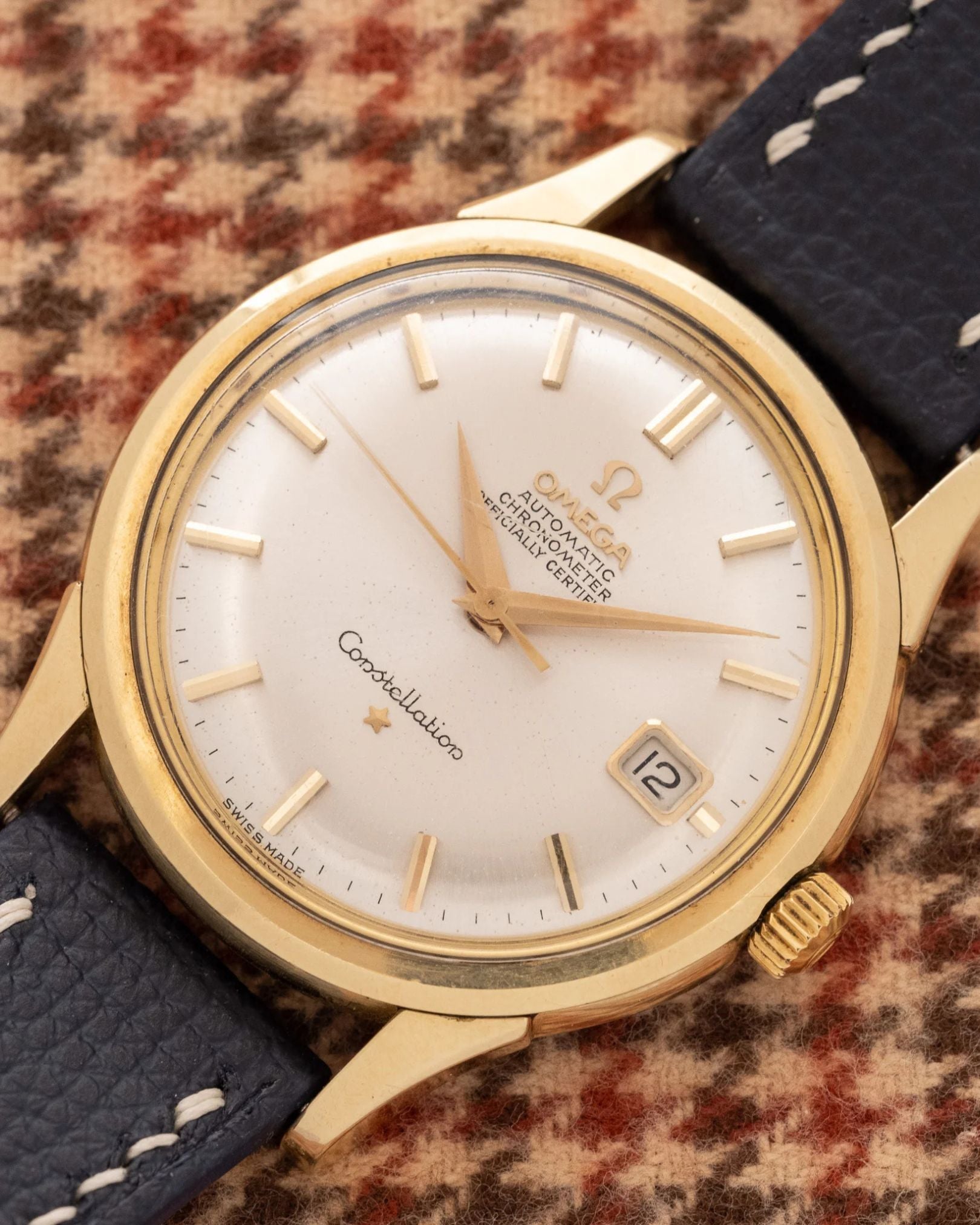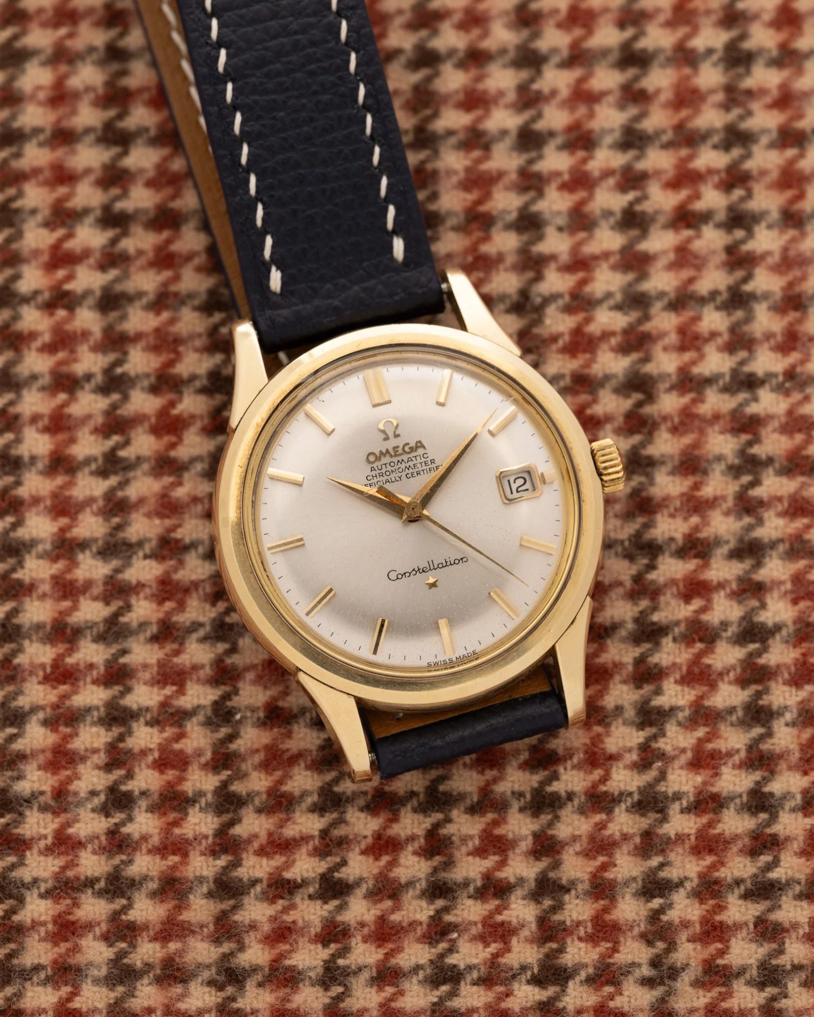 EXCLUSIVE AT LE ALFRÉ in collaboration with our good friends at Huntington Company, Alfré's verified vintage watch dealer. One of the most iconic Omega styles ever created, the Omega Constellation. This is a very rare jumbo case (36.5mm) in incredible condition with a beautiful gold case & details, dating all the way back to the 1960s.