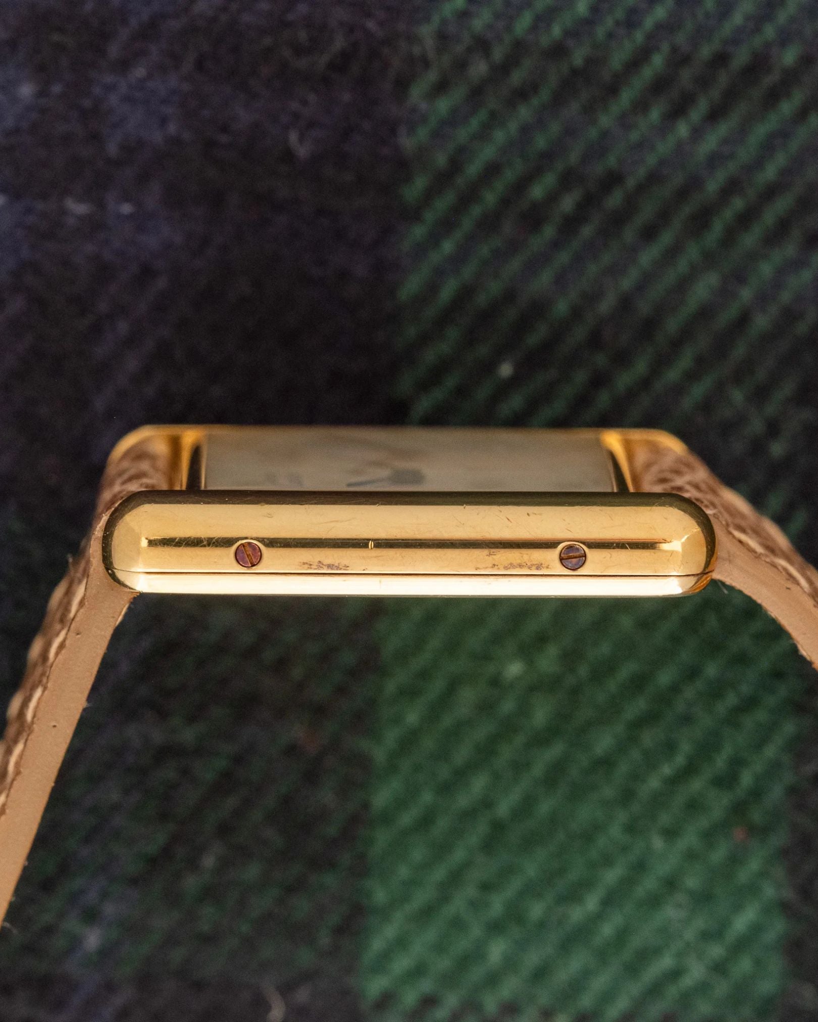 - Strap: Handmade light brown lizard strap