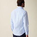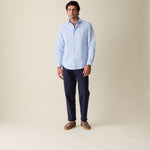 This cotton-linen blend shirt runs slightly slimmer and more fitted than our oxford shirts. If you are in between sizes, please size up.