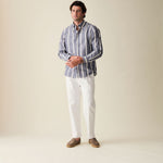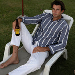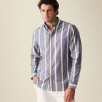 Navy Wide Stripe Summer Chambray Shirt